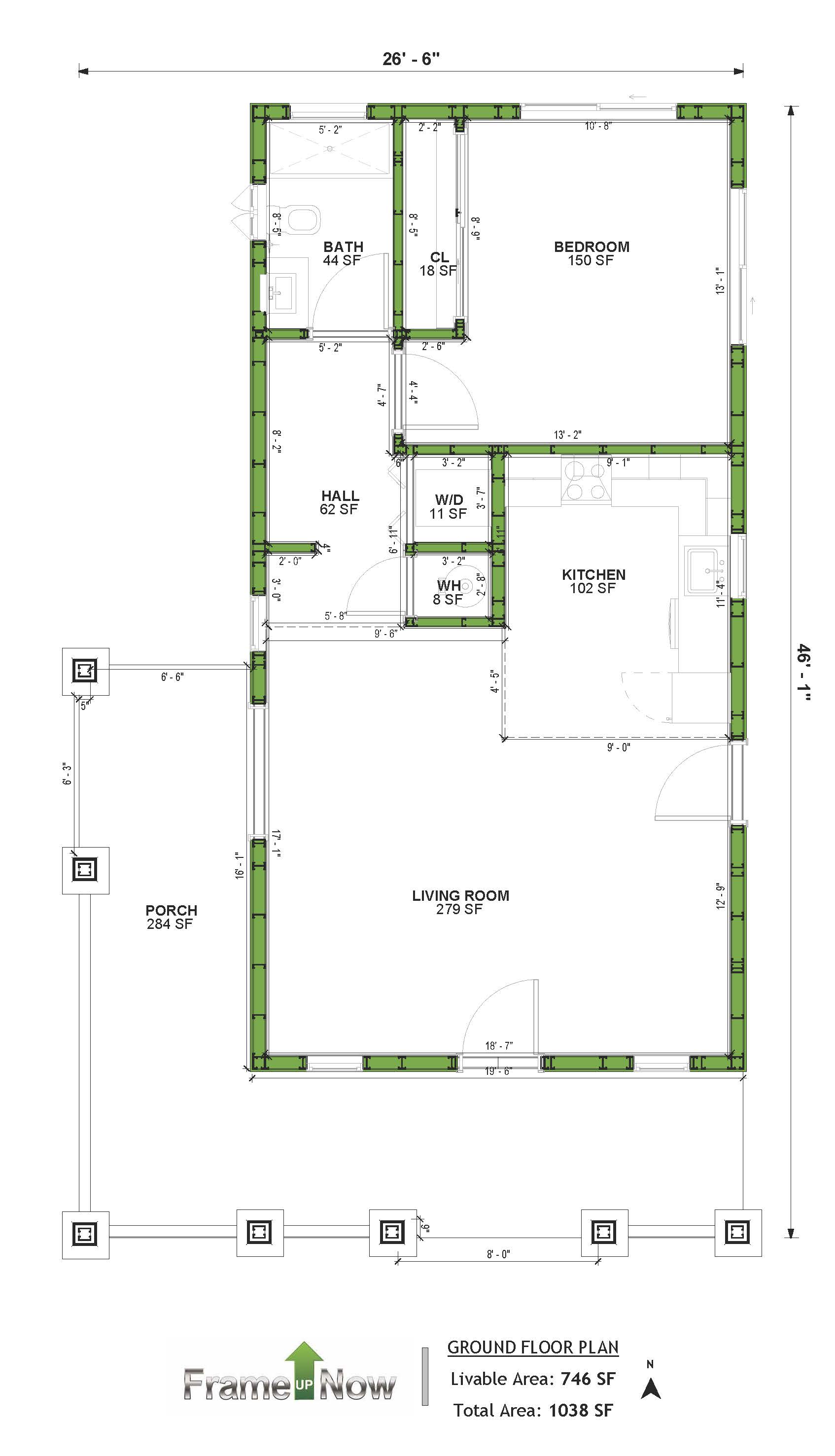 - Cold-Formed Steel Skeleton: Complete frame; wall panels, beams, trusses, and floor joists (if applicable)