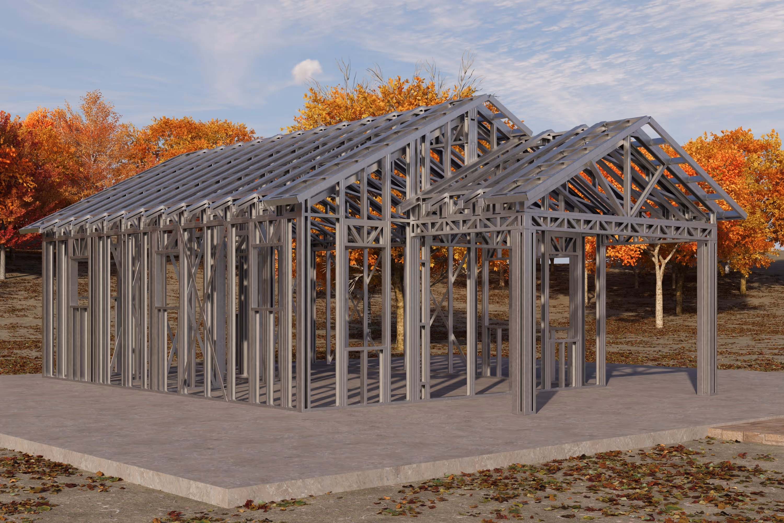 - Cold-Formed Steel Skeleton: Complete frame; wall panels, beams, trusses, floor joists (if applicable), fasteners, and hardware for you to erect your skeleton.