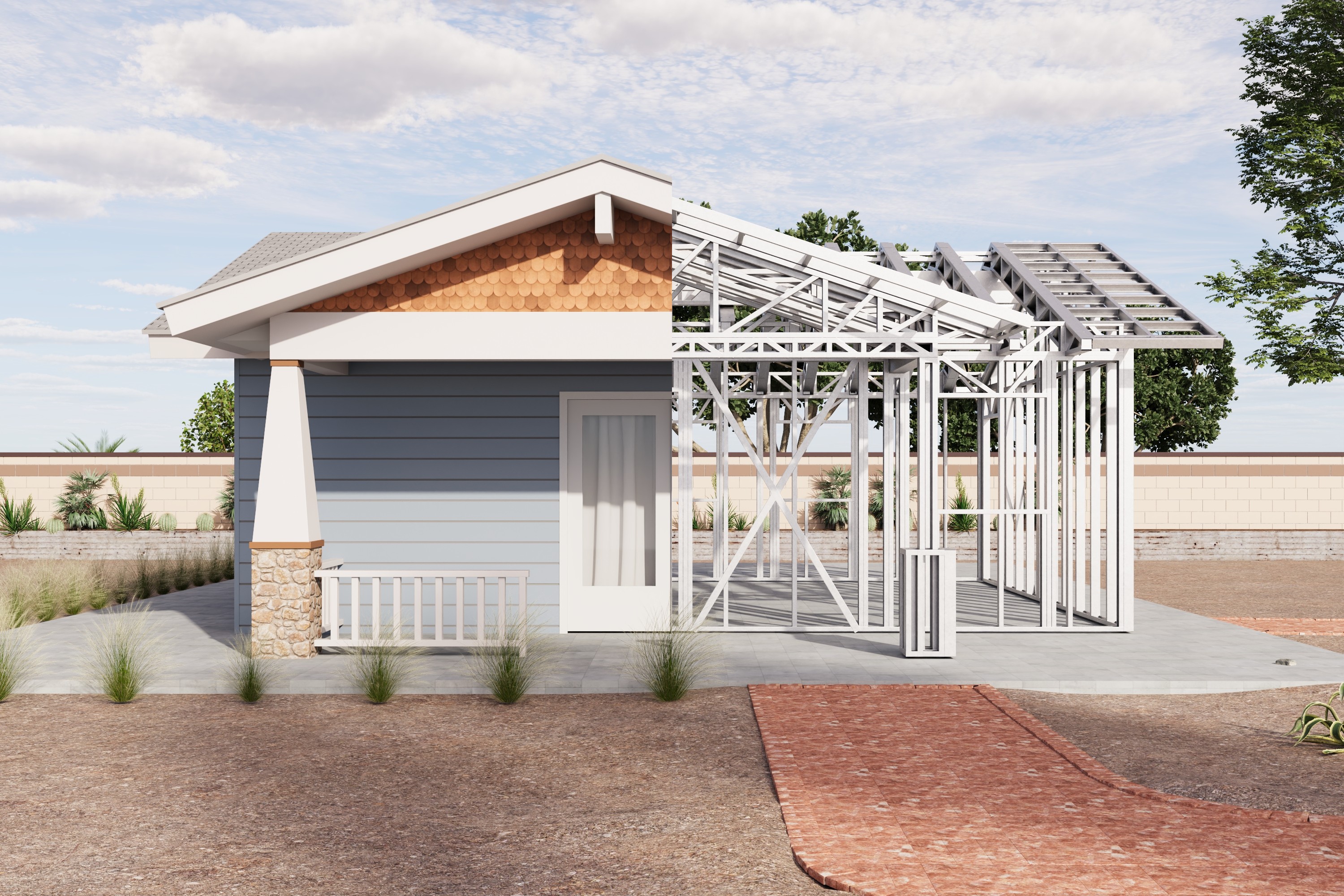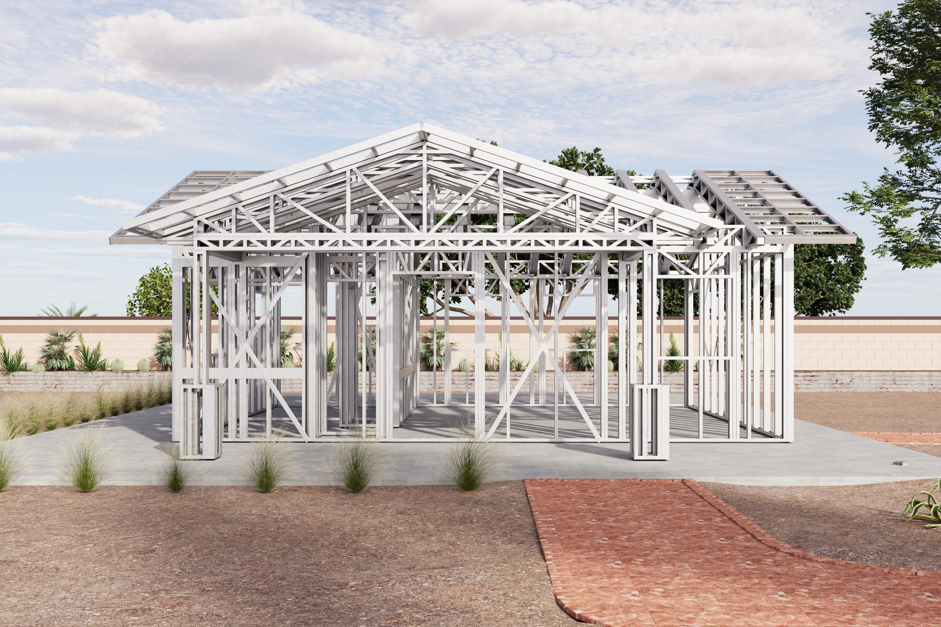 - Cold-Formed Steel Skeleton: Complete frame; wall panels, beams, trusses, floor joists (if applicable), fasteners, and hardware for you to erect your skeleton.