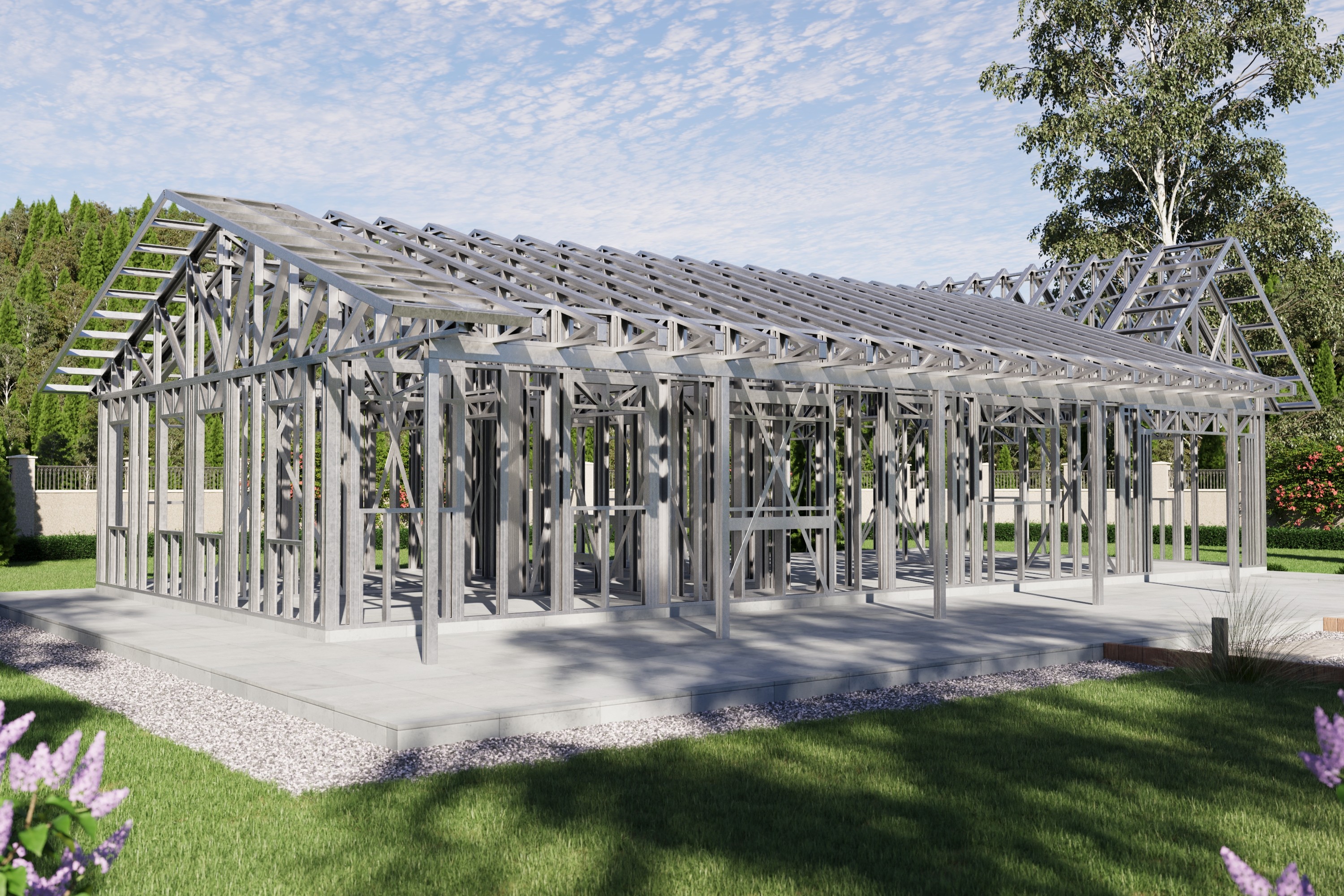 - Cold-Formed Steel Skeleton: Complete frame; wall panels, beams, trusses, floor joists (if applicable), fasteners, and hardware for you to erect your skeleton.