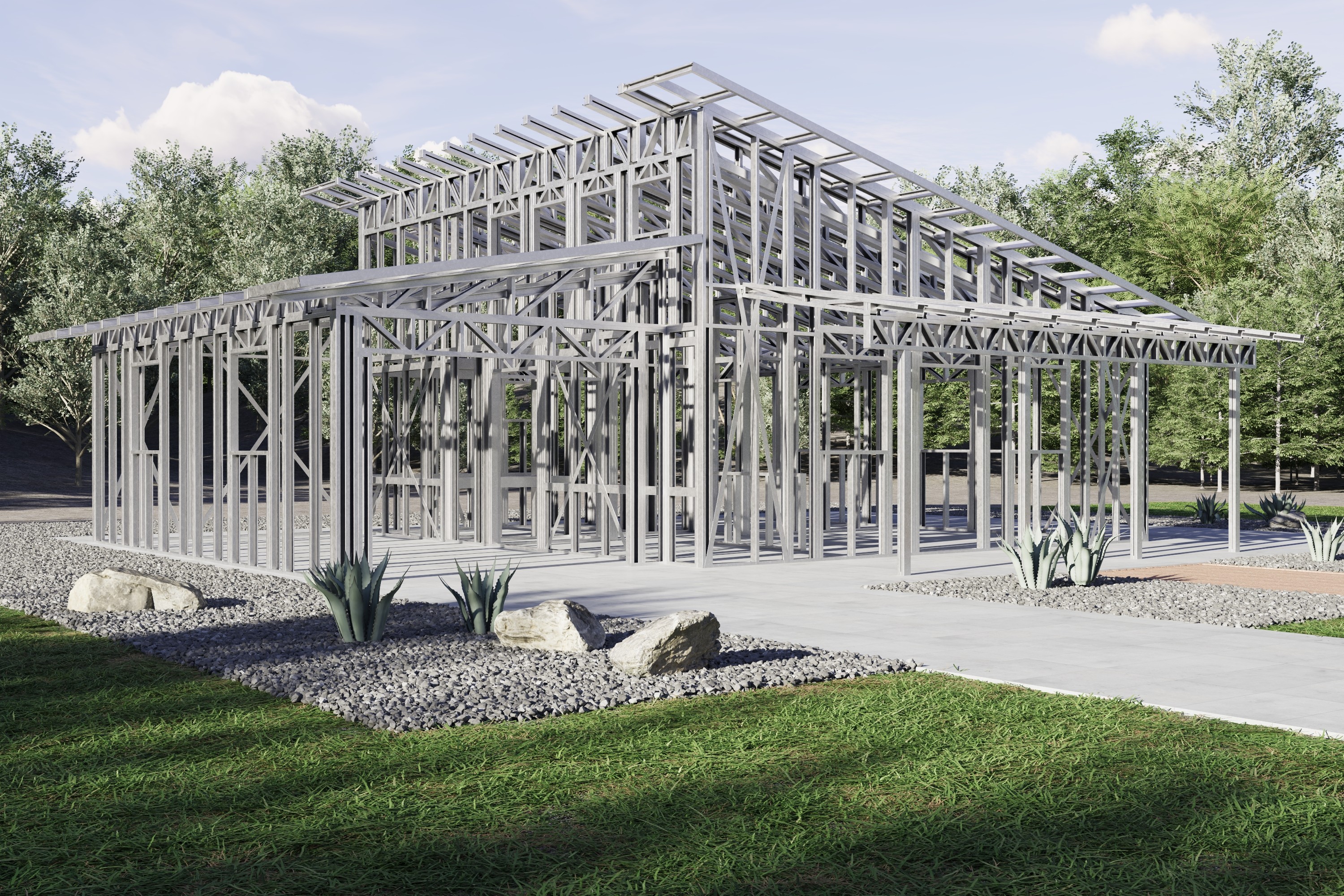 - Cold-Formed Steel Skeleton: Complete frame; wall panels, beams, trusses, floor joists (if applicable), fasteners, and hardware for you to erect your skeleton.
