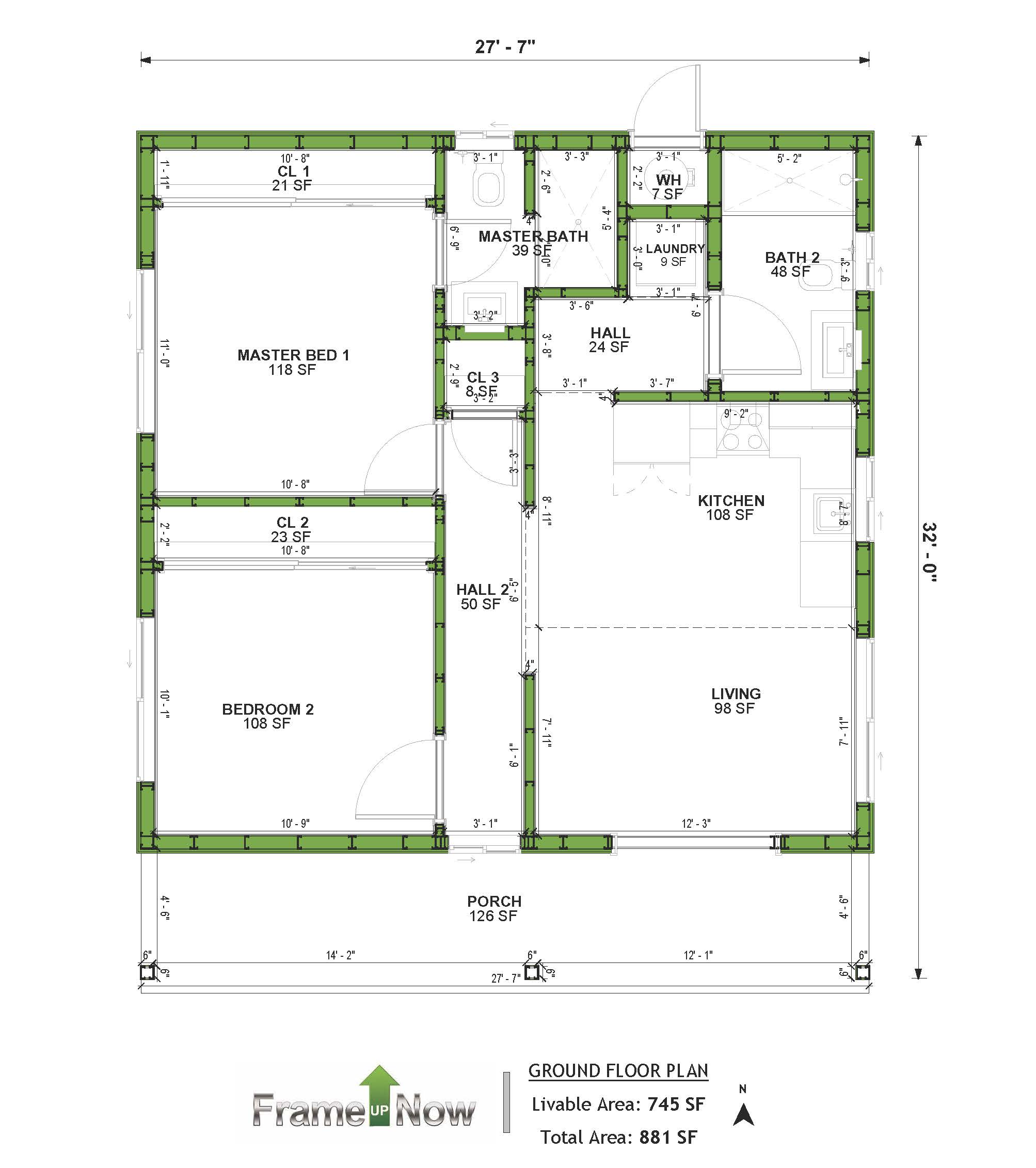 - Cold-Formed Steel Skeleton: Complete frame; wall panels, beams, trusses, and floor joists (if applicable)