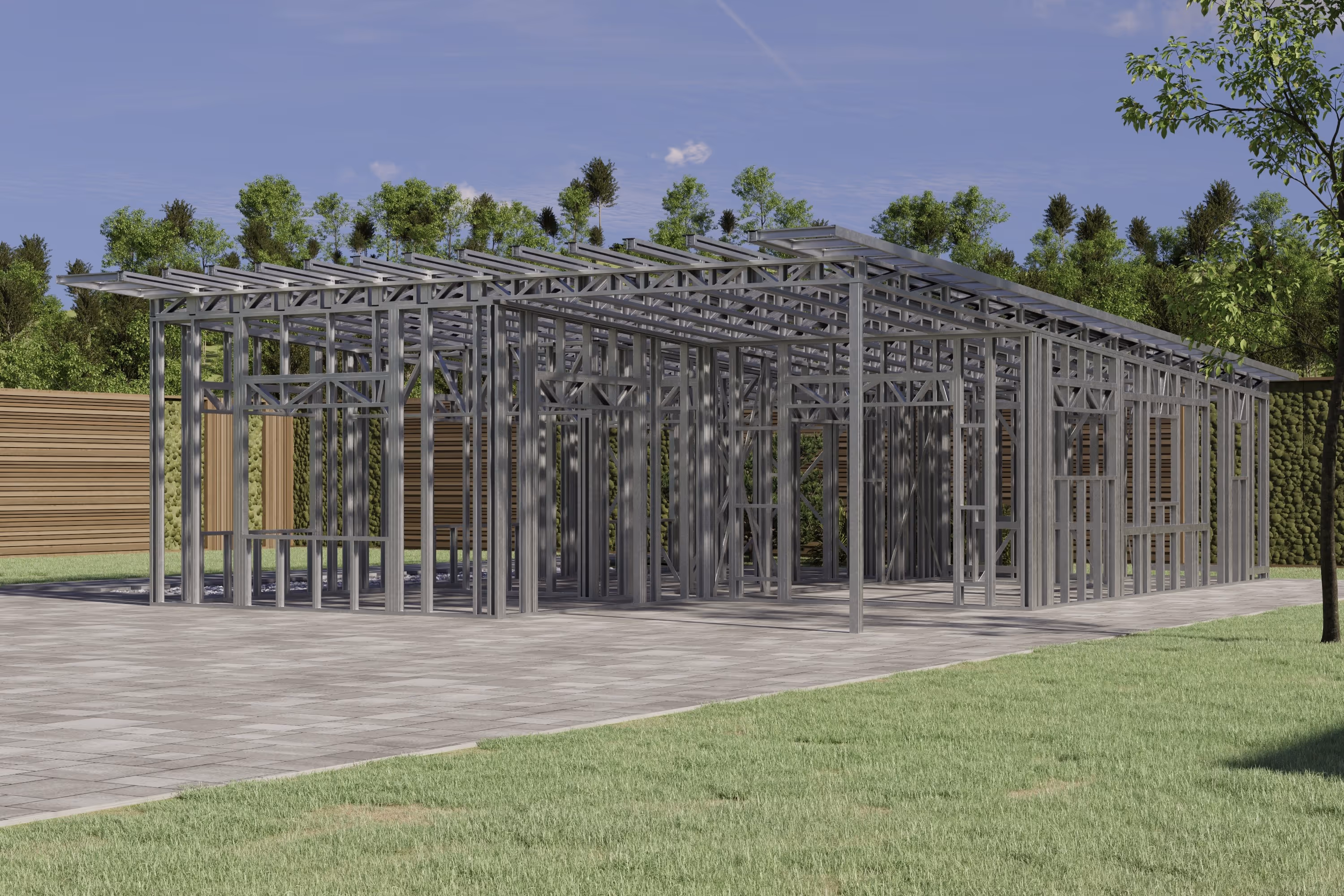 - Cold-Formed Steel Skeleton: Complete frame; wall panels, beams, trusses, floor joists (if applicable), fasteners, and hardware for you to erect your skeleton.
