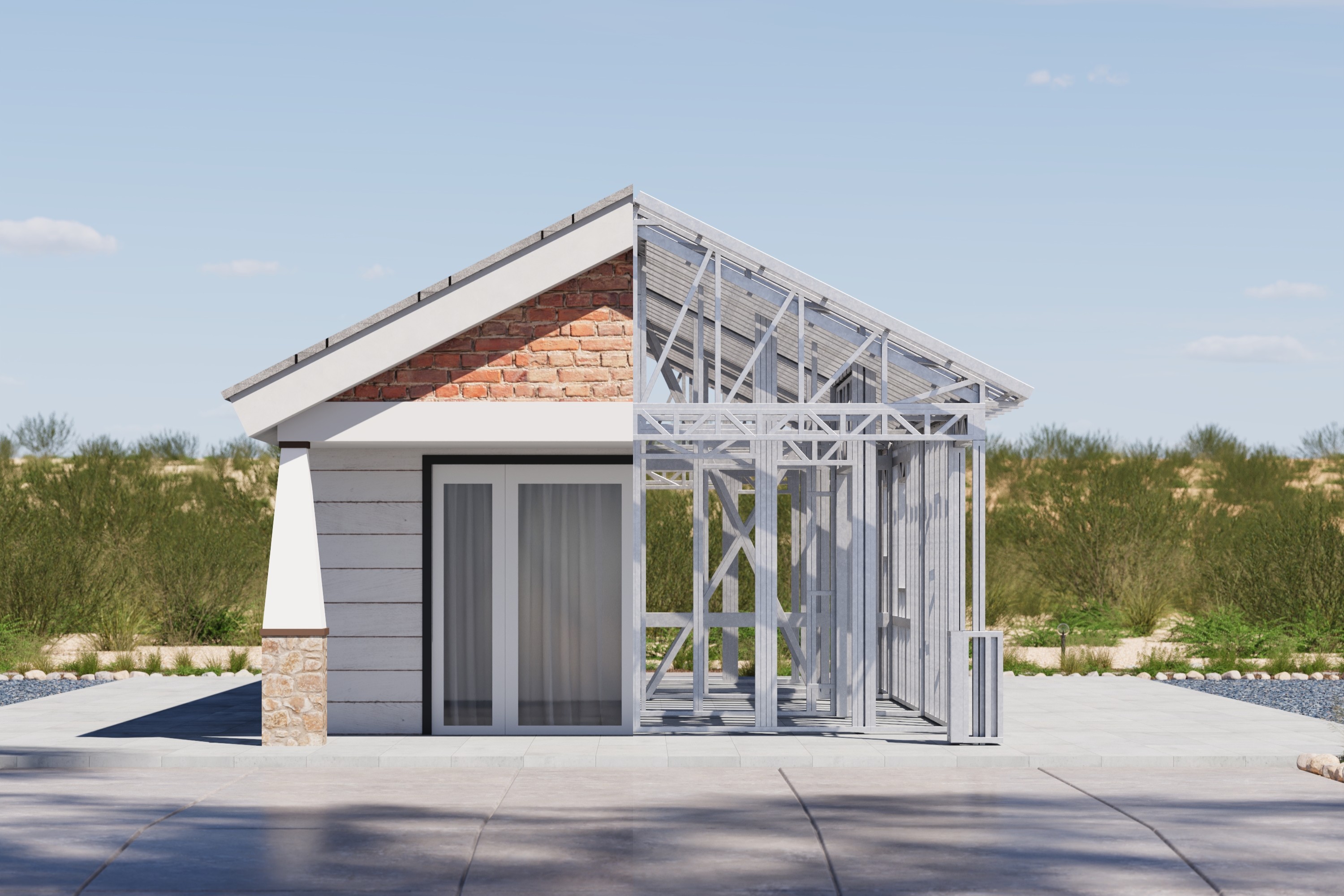 - Cold-Formed Steel Skeleton: Complete frame; wall panels, beams, trusses, and floor joists (if applicable)