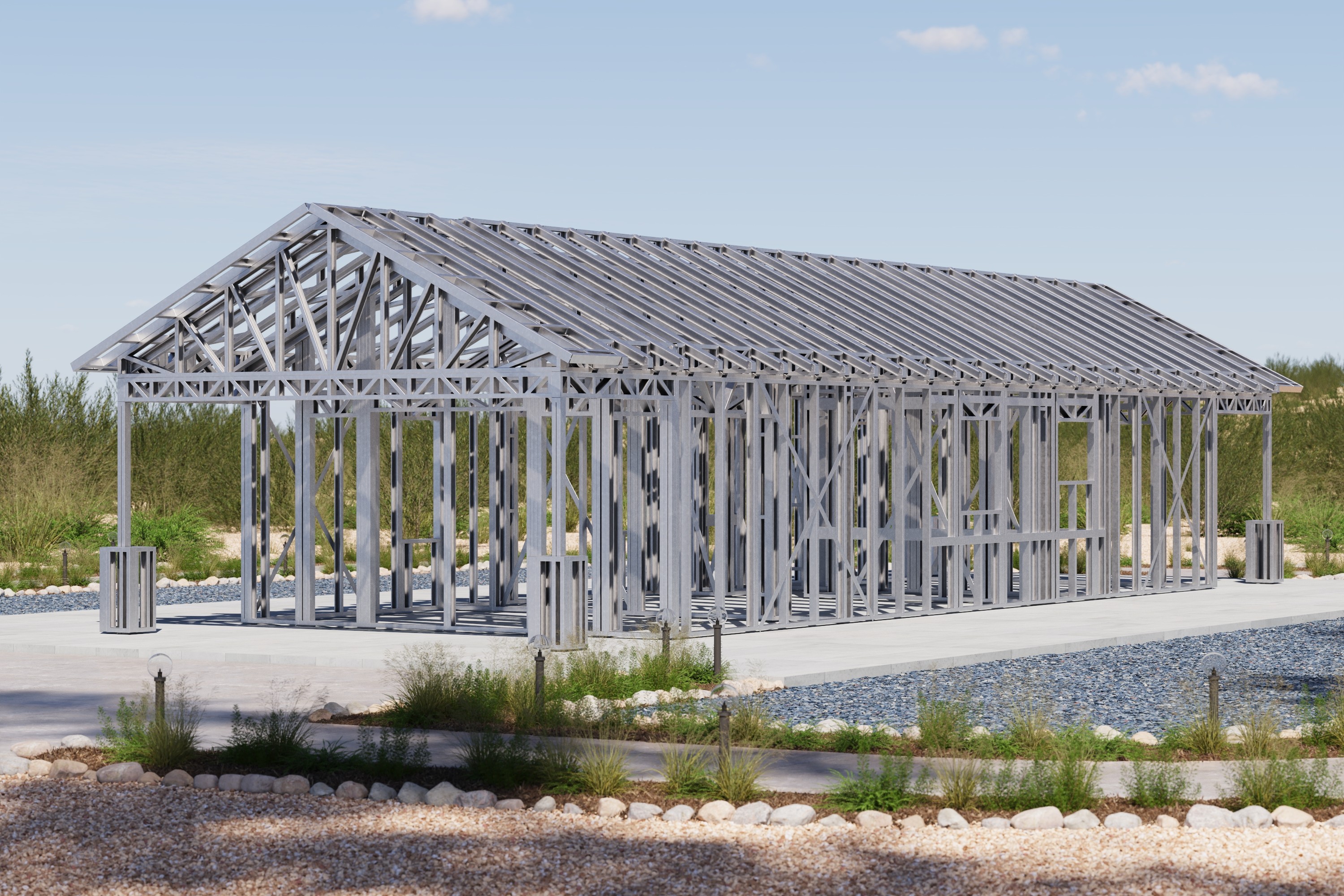 - Cold-Formed Steel Skeleton: Complete frame; wall panels, beams, trusses, floor joists (if applicable), fasteners, and hardware for you to erect your skeleton.