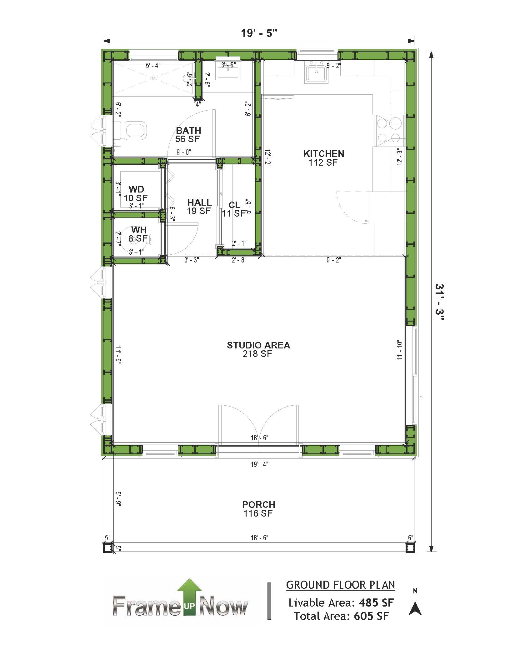 Total Area: 605 SF
