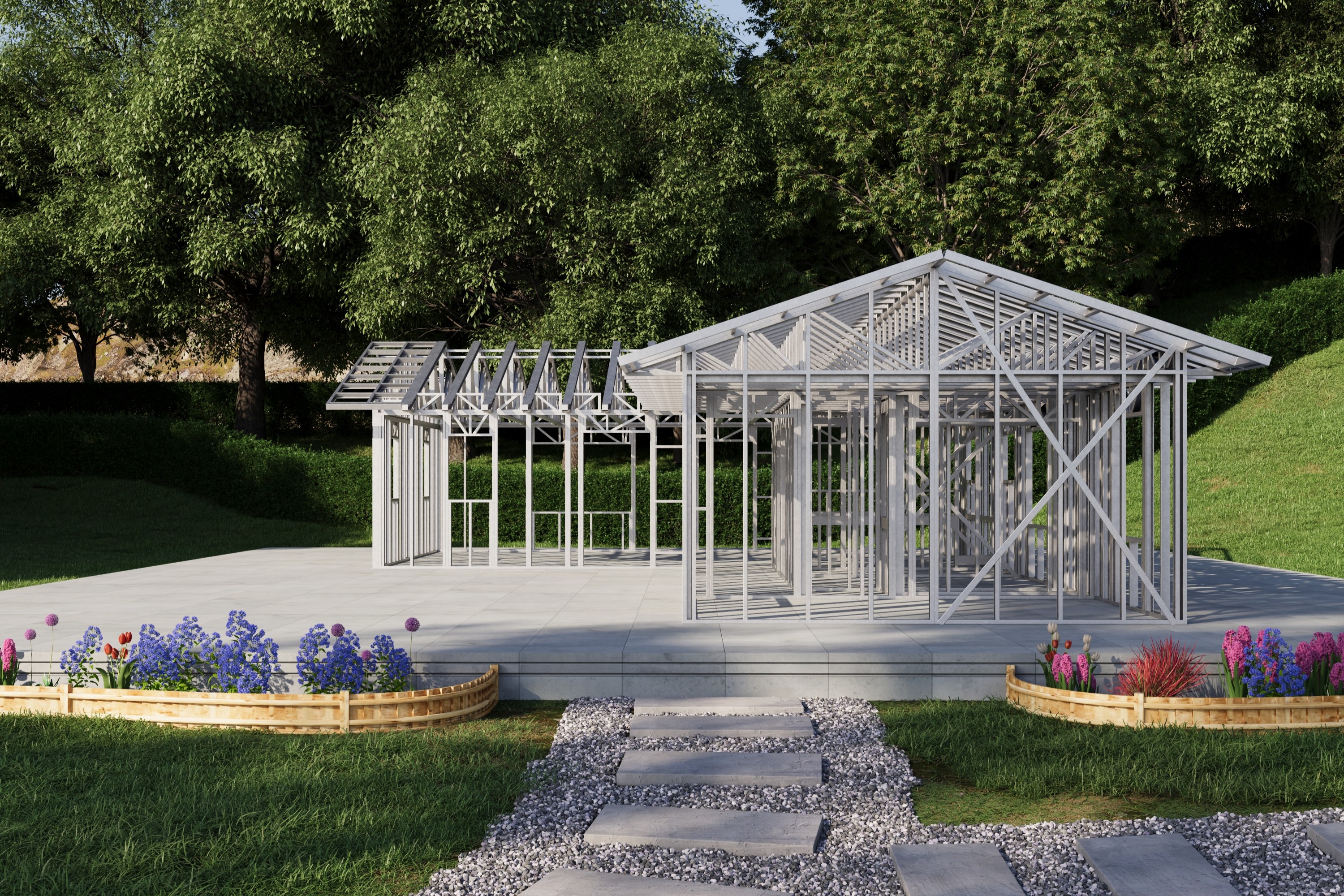 - Cold-Formed Steel Skeleton: Complete frame; wall panels, beams, trusses, floor joists (if applicable), fasteners, and hardware for you to erect your skeleton.