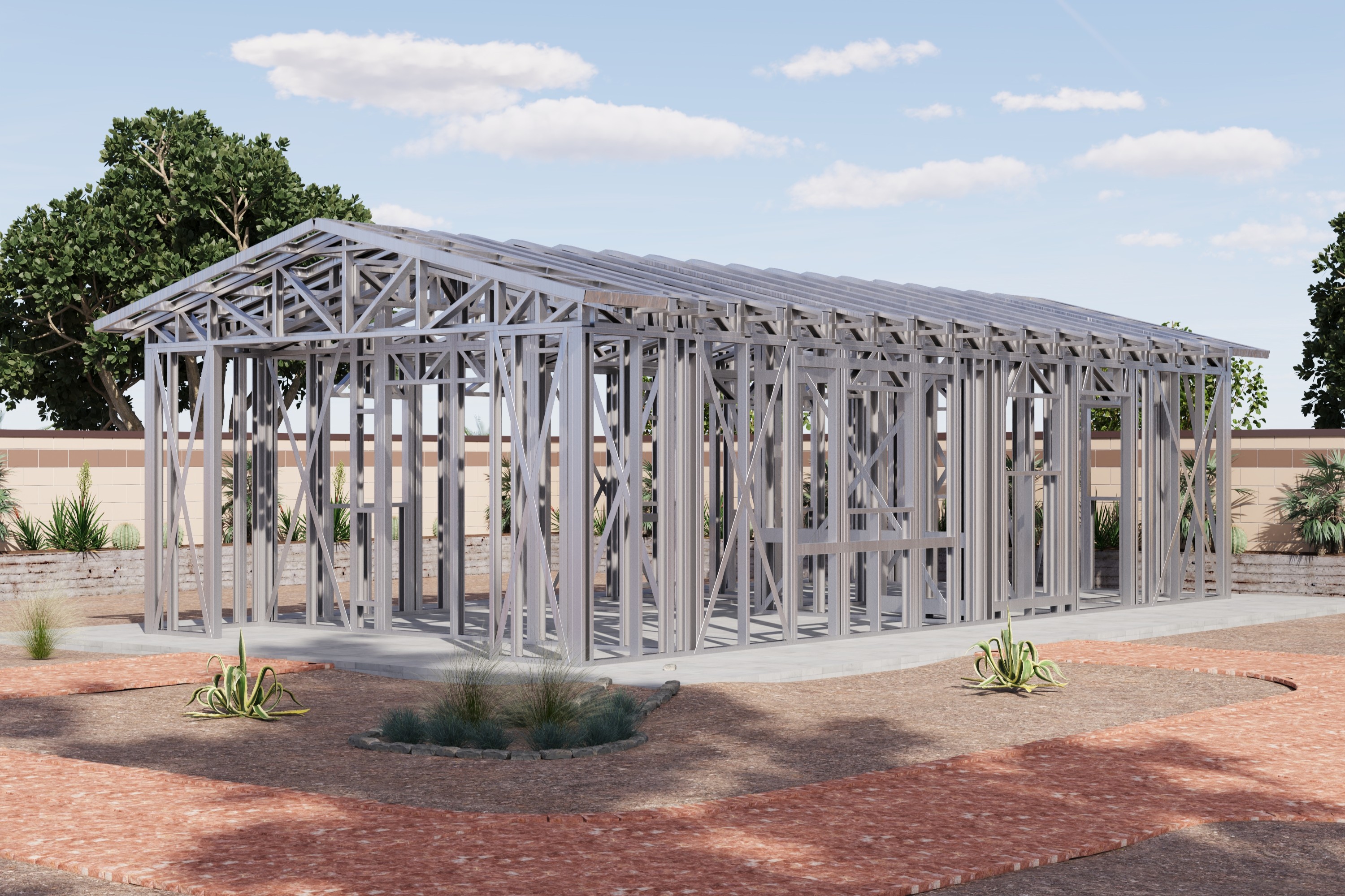 - Cold-Formed Steel Skeleton: Complete frame; wall panels, beams, trusses, and floor joists (if applicable)