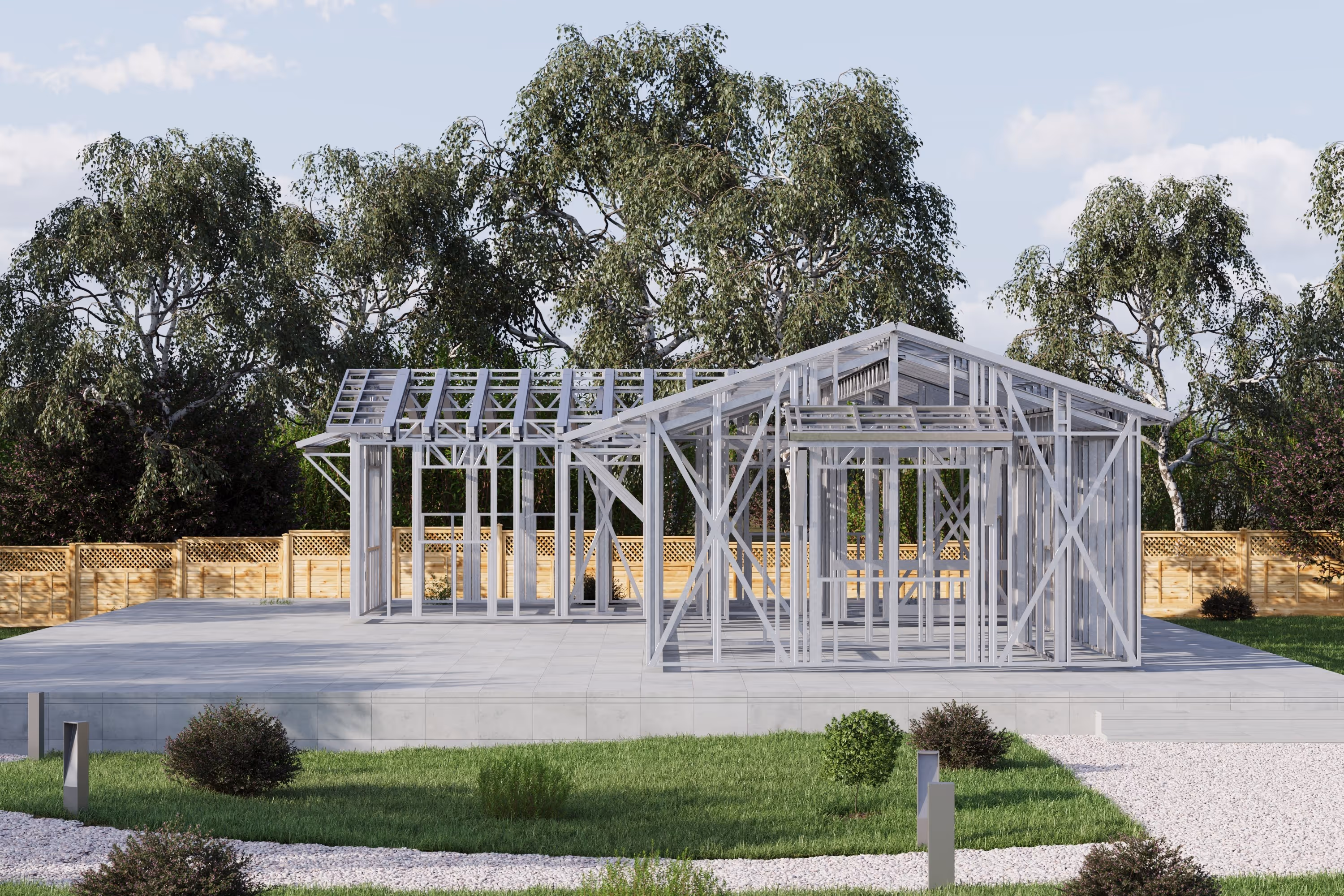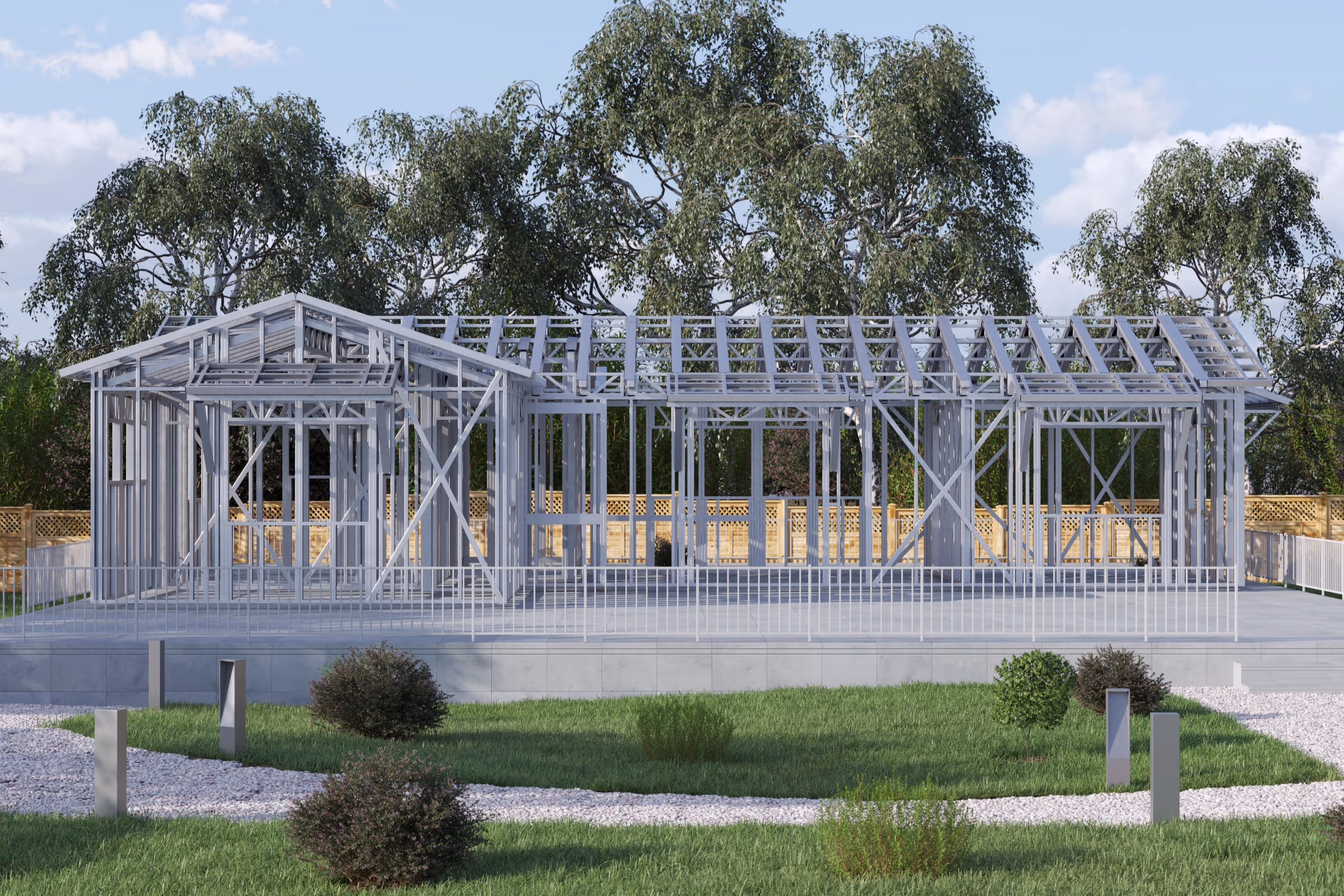 - Cold-Formed Steel Skeleton: Complete frame; wall panels, beams, trusses, floor joists (if applicable), fasteners, and hardware for you to erect your skeleton.