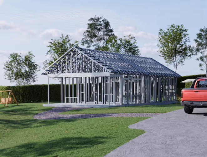 - Cold-Formed Steel Skeleton: Complete frame; wall panels, beams, trusses, floor joists (if applicable), fasteners, and hardware for you to erect your skeleton.