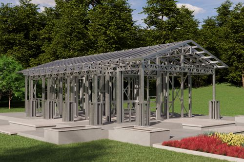 - Cold-Formed Steel Skeleton: Complete frame; wall panels, beams, trusses, floor joists (if applicable), fasteners, and hardware for you to erect your skeleton.