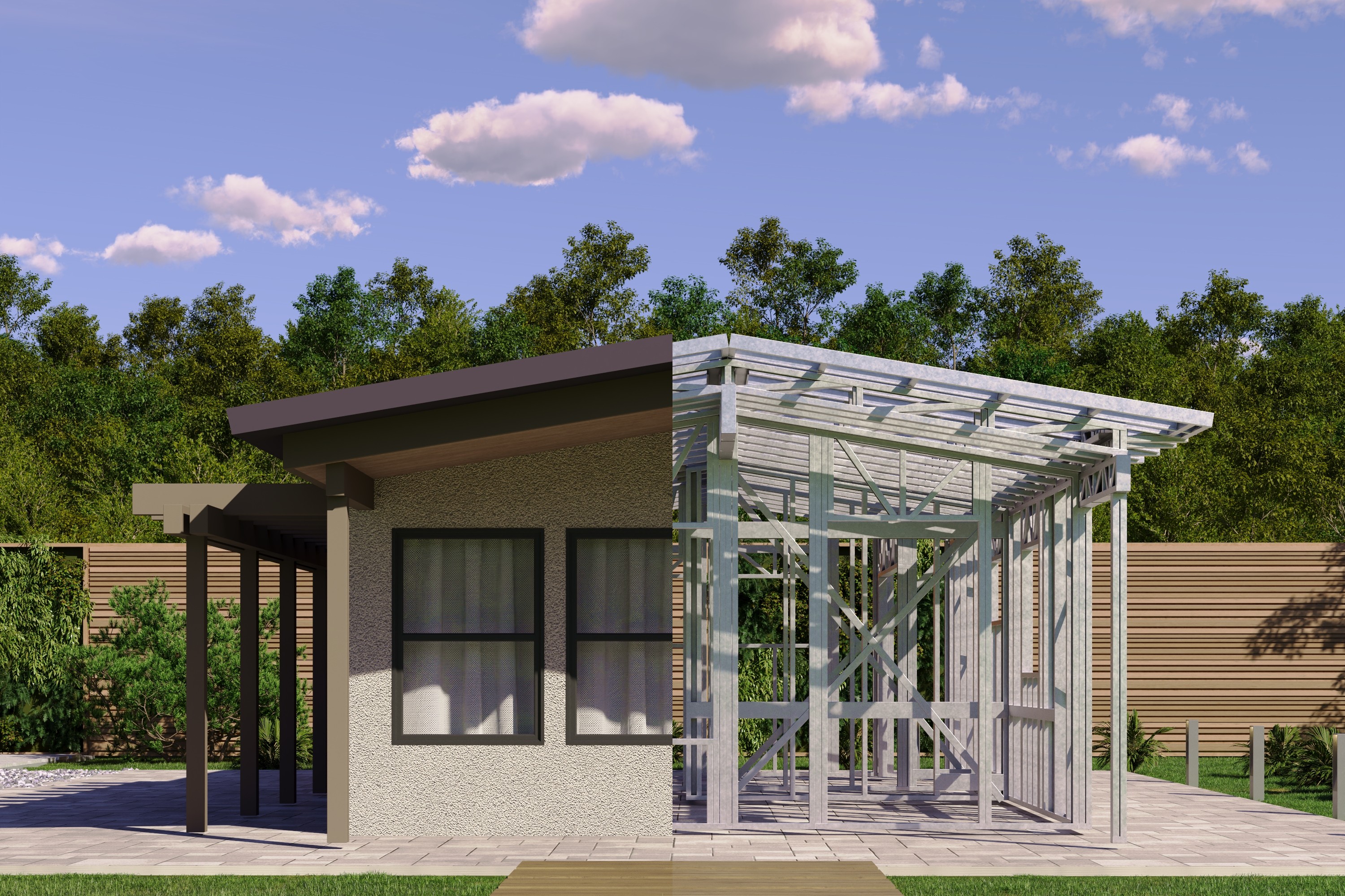 - Cold-Formed Steel Skeleton: Complete frame; wall panels, beams, trusses, and floor joists (if applicable)