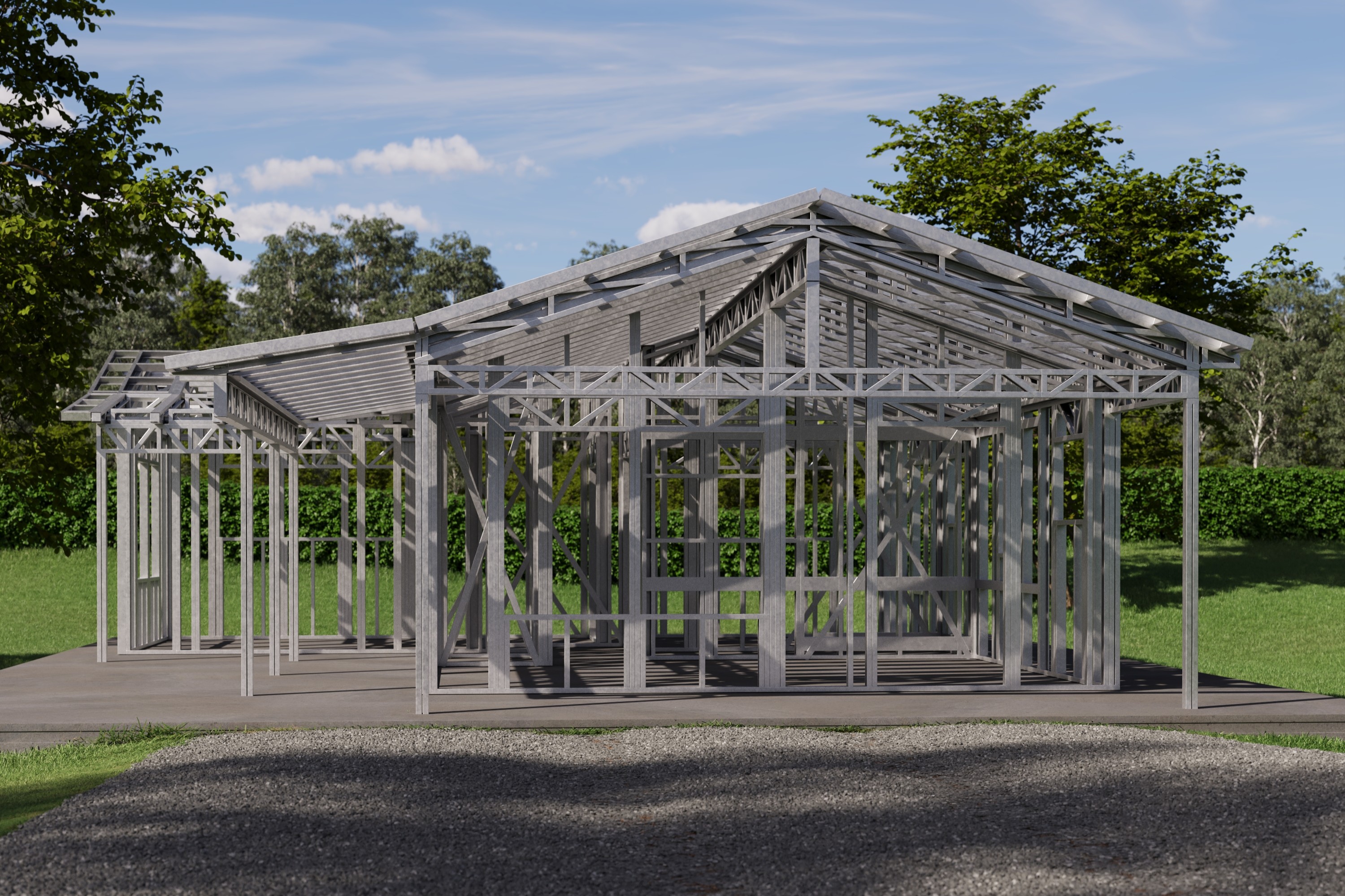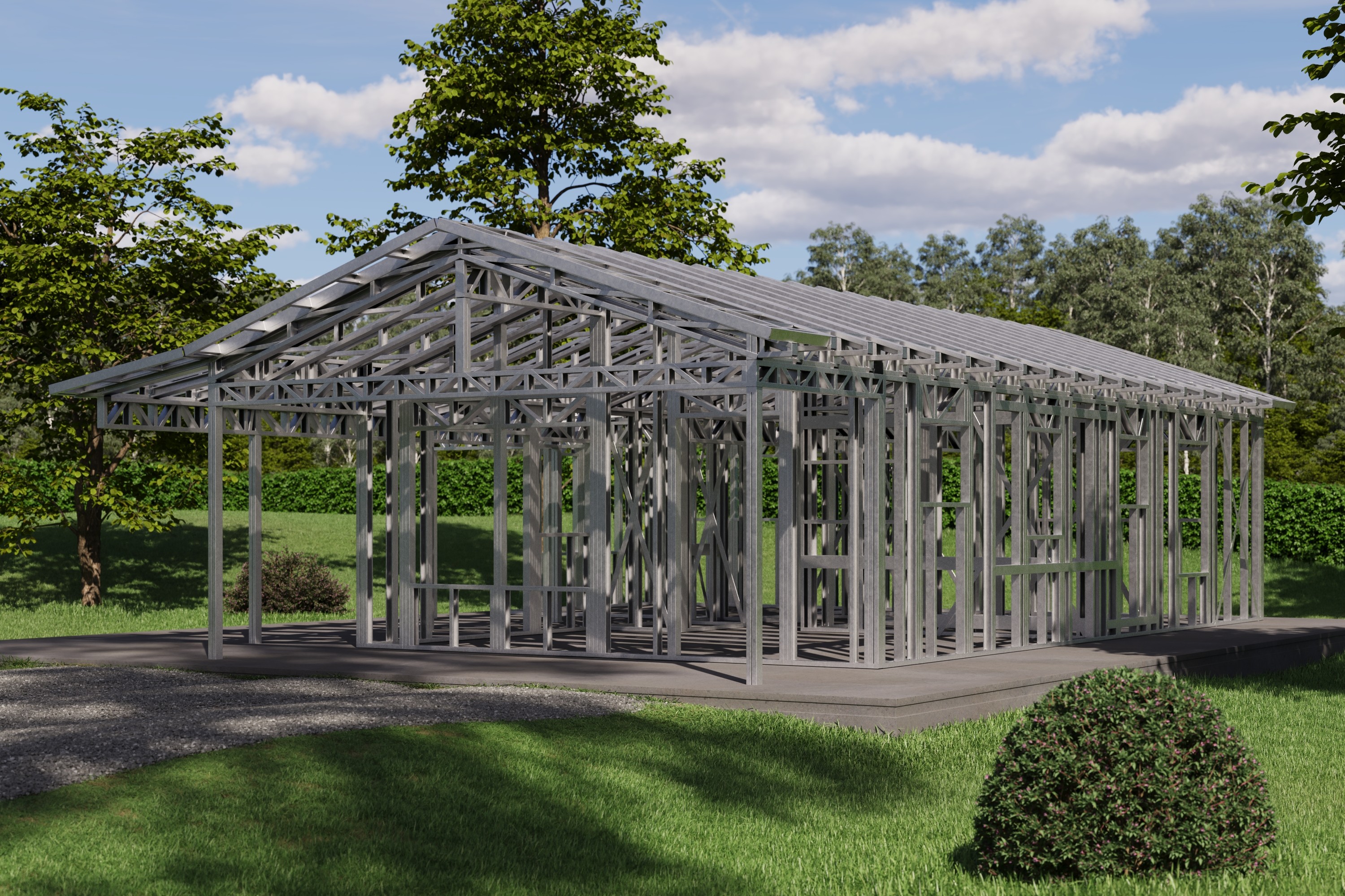 - Cold-Formed Steel Skeleton: Complete frame; wall panels, beams, trusses, and floor joists (if applicable)