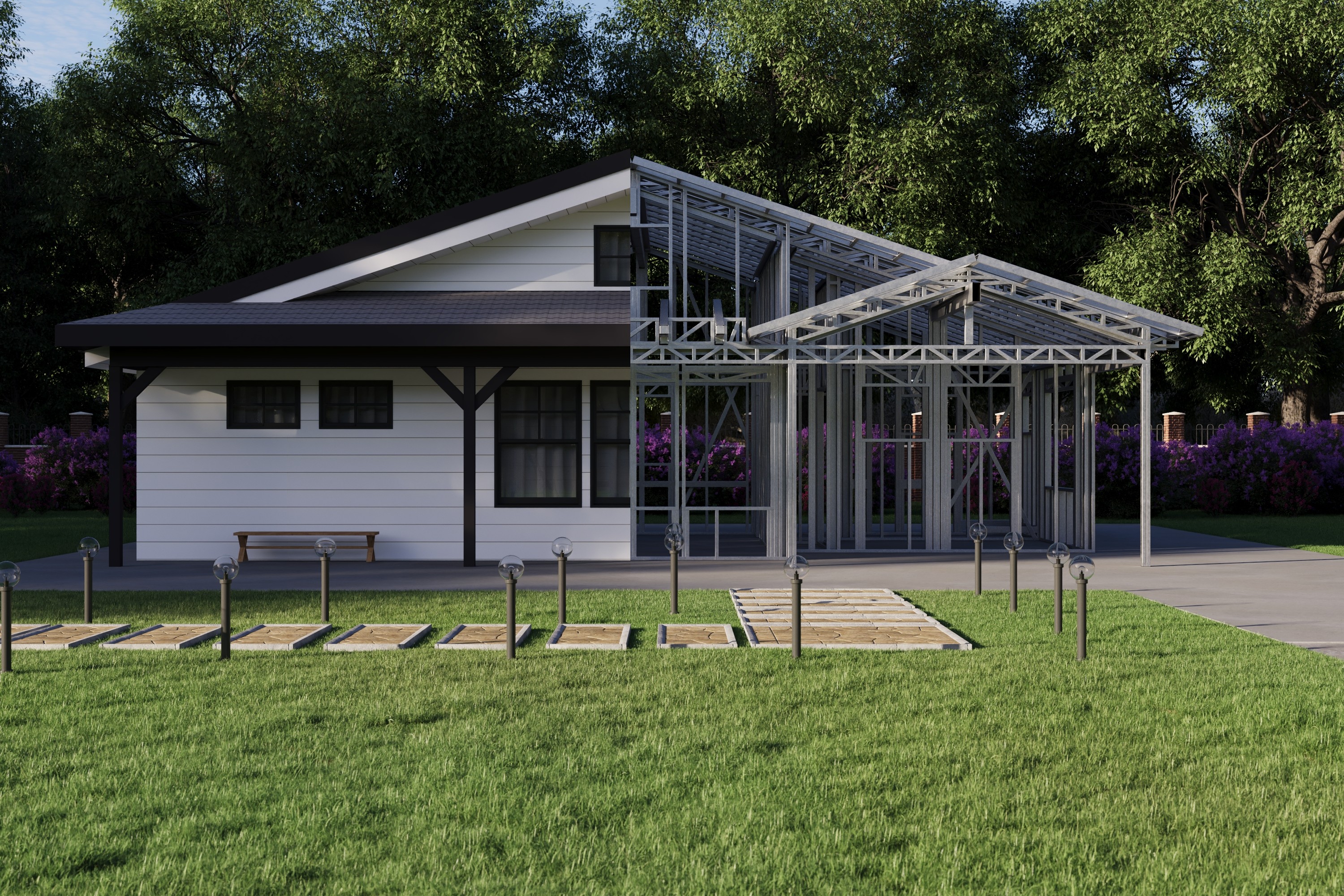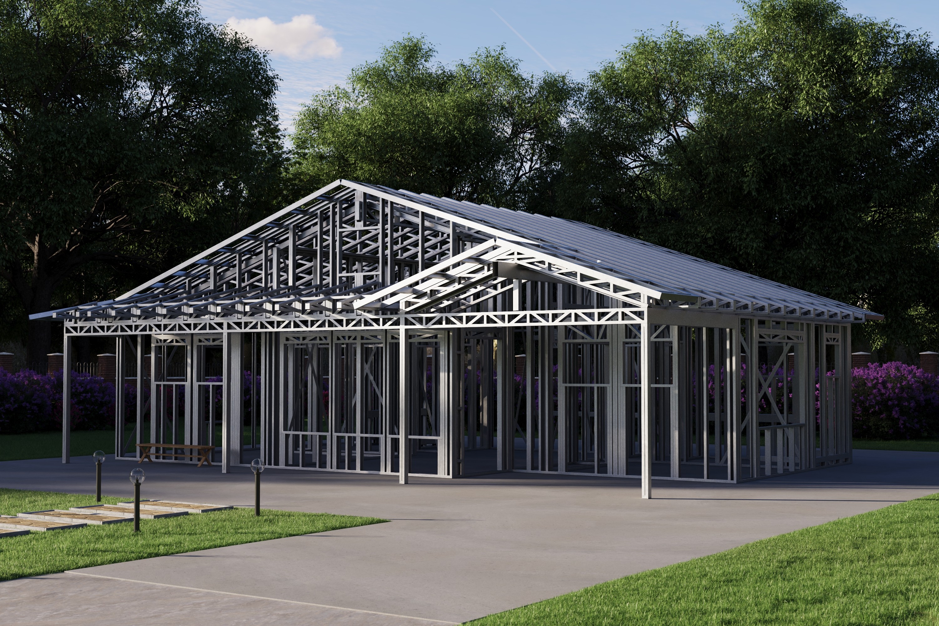 - Cold-Formed Steel Skeleton: Complete frame; wall panels, beams, trusses, and floor joists (if applicable)