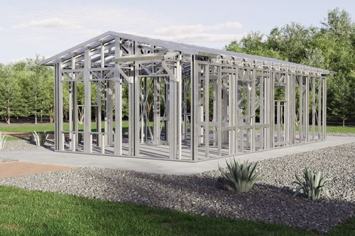 - Cold-Formed Steel Skeleton: Complete frame; wall panels, beams, trusses, floor joists (if applicable), fasteners, and hardware for you to erect your skeleton.