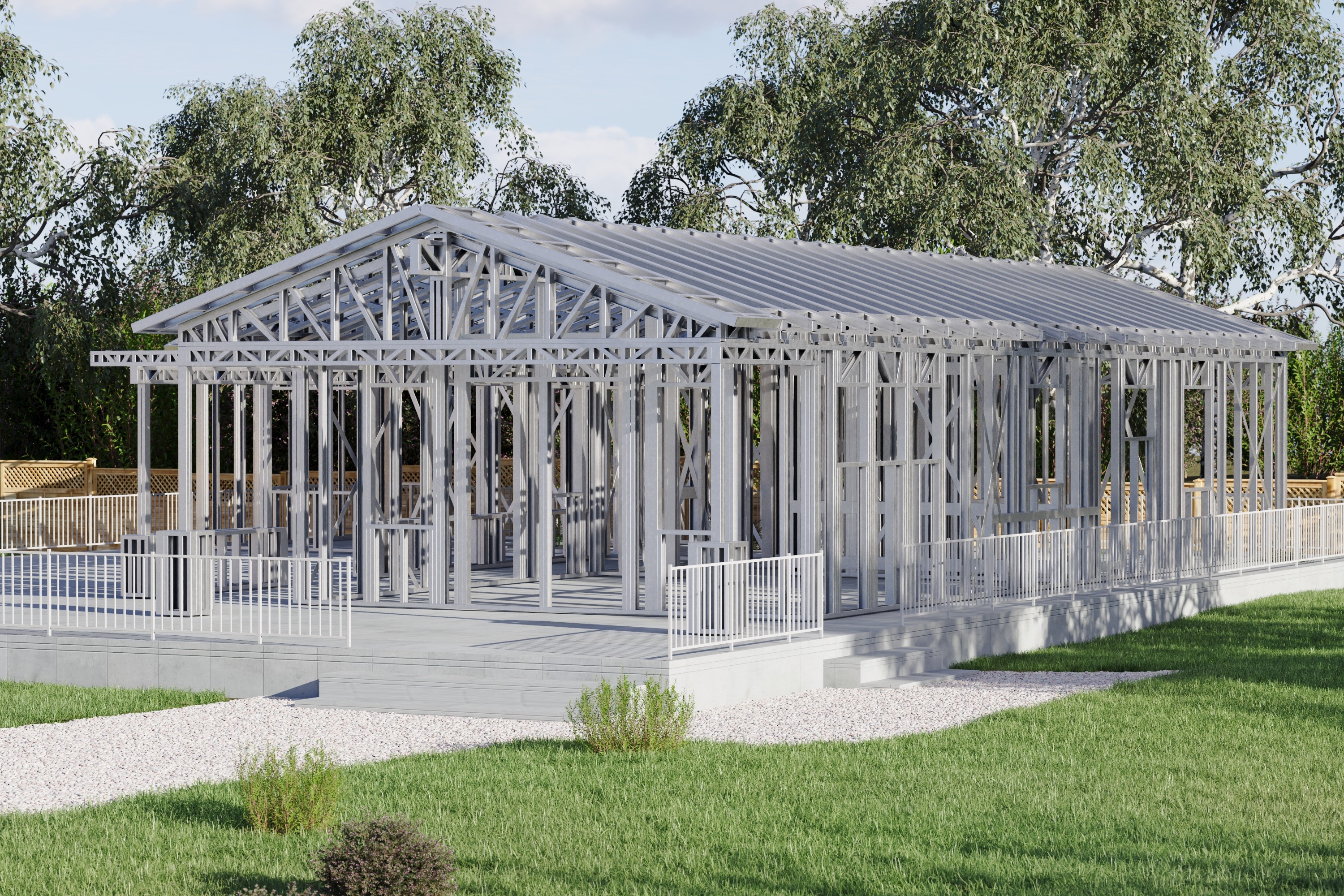 - Cold-Formed Steel Skeleton: Complete frame; wall panels, beams, trusses, floor joists (if applicable), fasteners, and hardware for you to erect your skeleton.