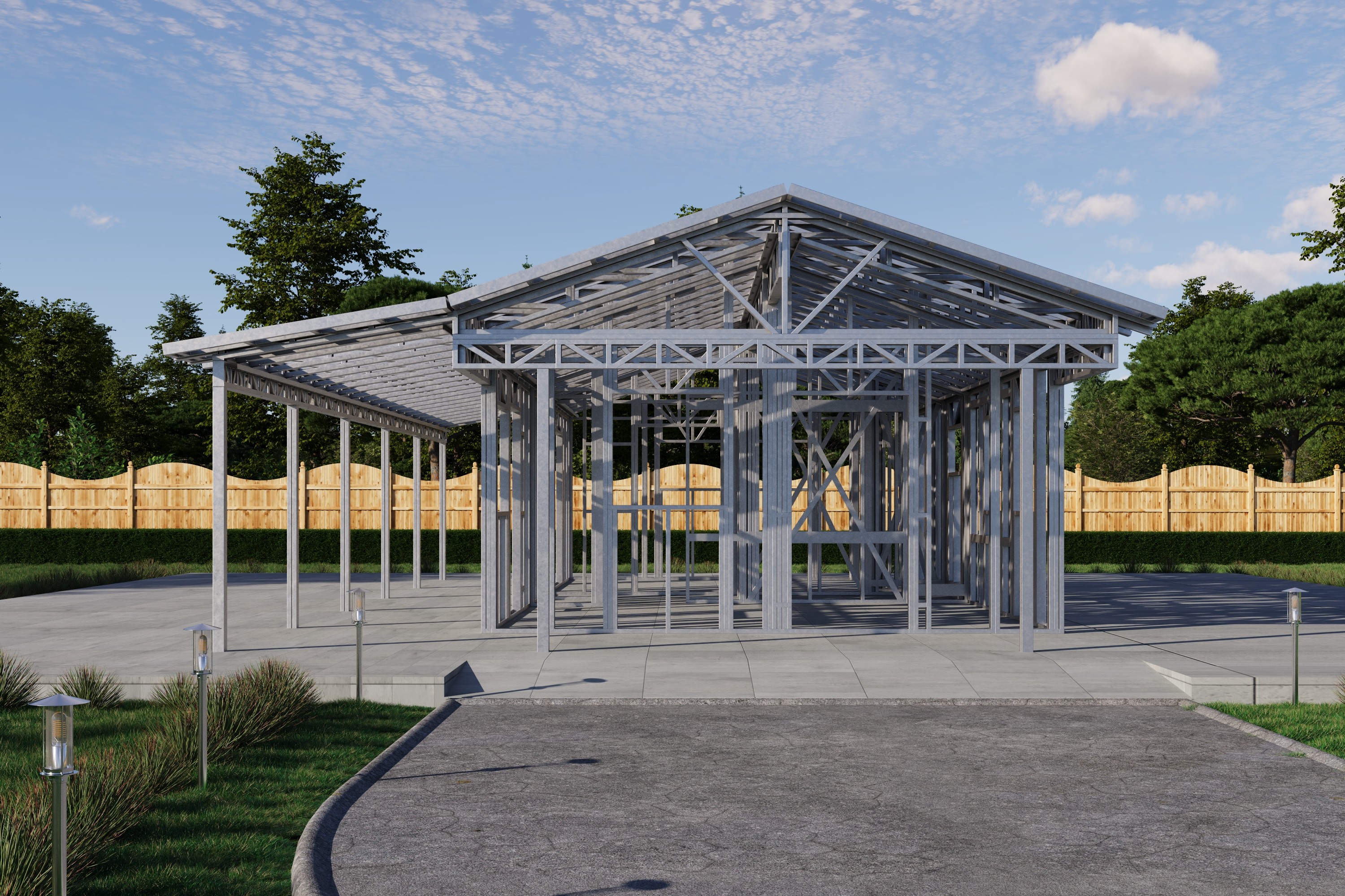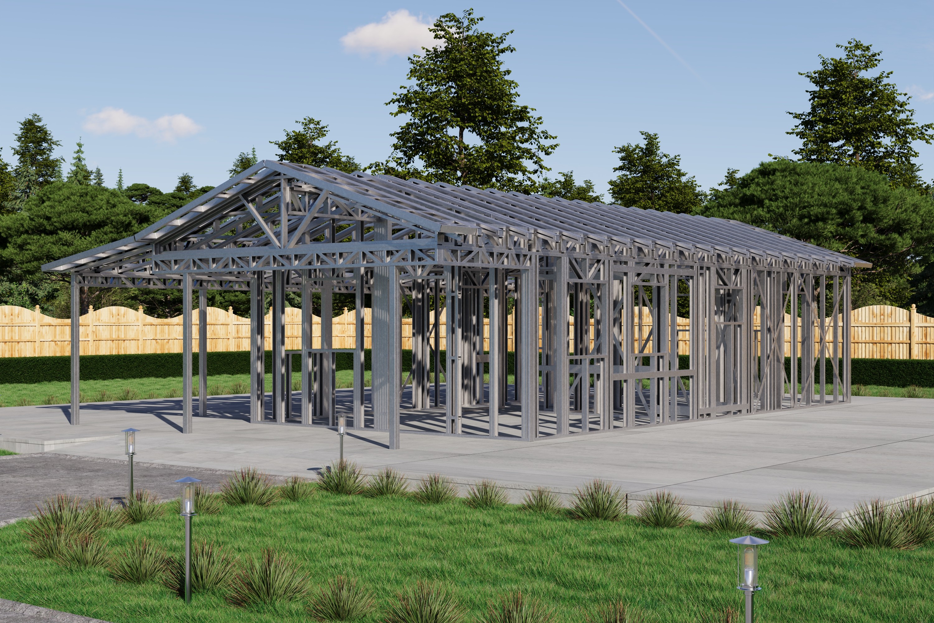 - Cold-Formed Steel Skeleton: Complete frame; wall panels, beams, trusses, floor joists (if applicable), fasteners, and hardware for you to erect your skeleton.