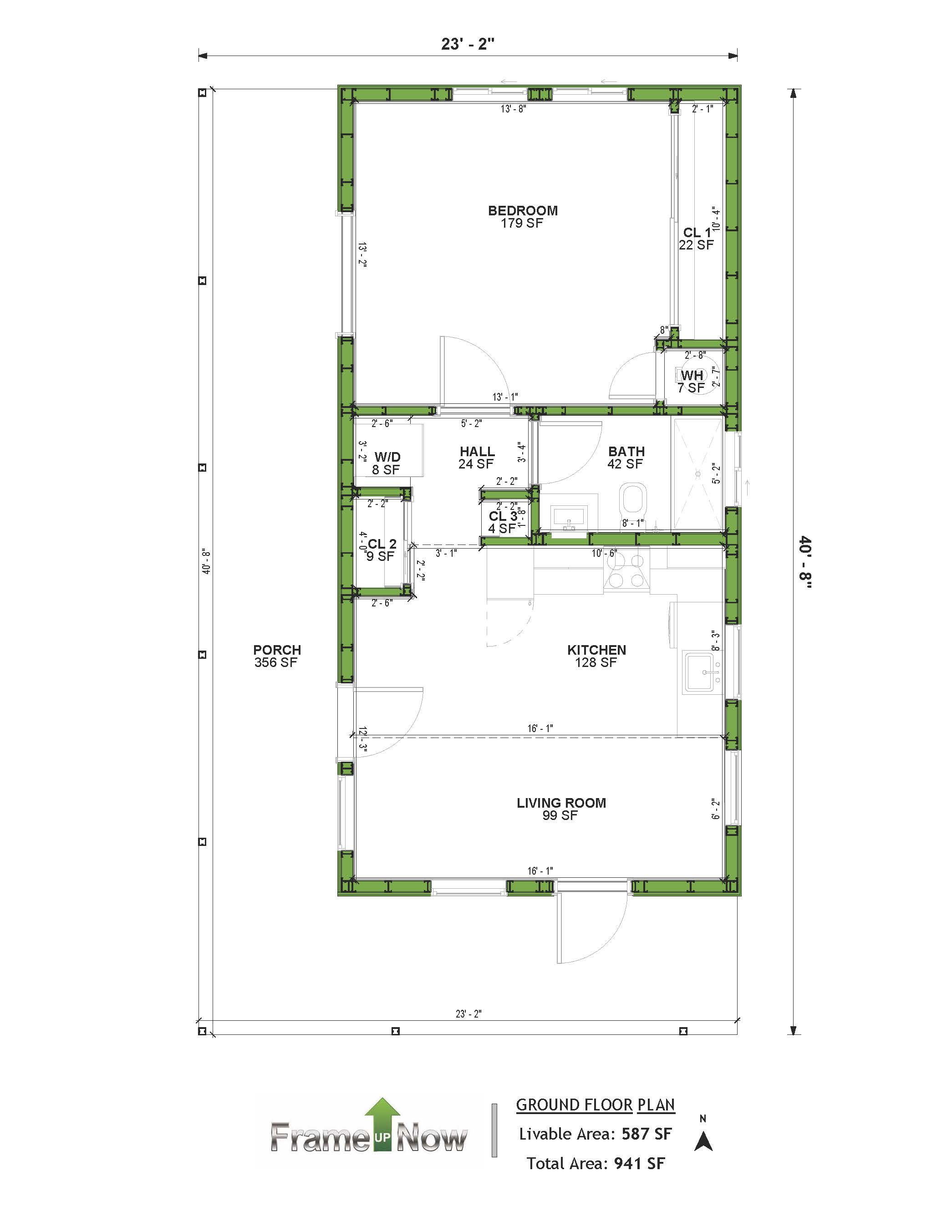 Total Area Under Roof: 941 SF