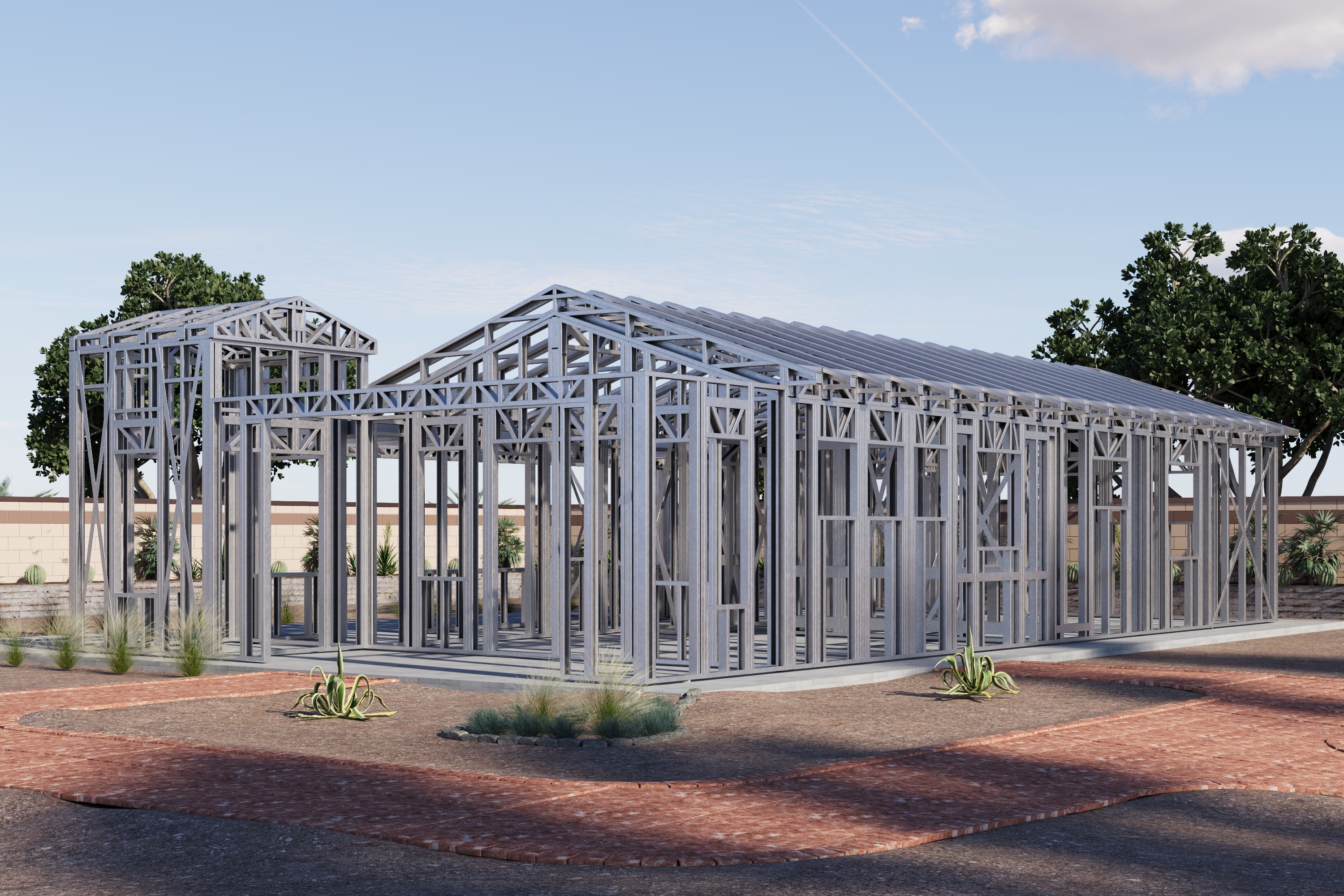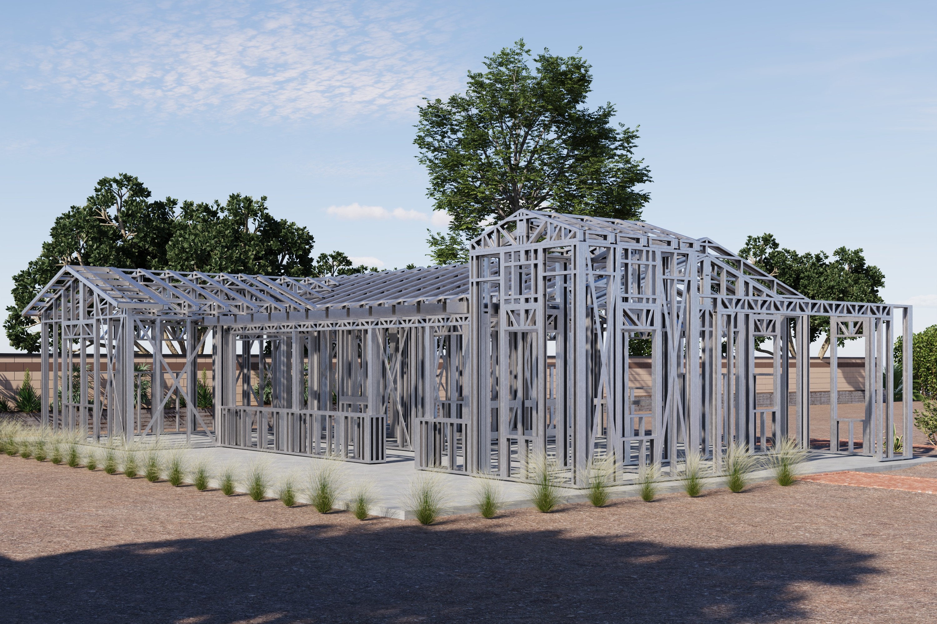 - Cold-Formed Steel Skeleton: Complete frame; wall panels, beams, trusses, floor joists (if applicable), fasteners, and hardware for you to erect your skeleton.