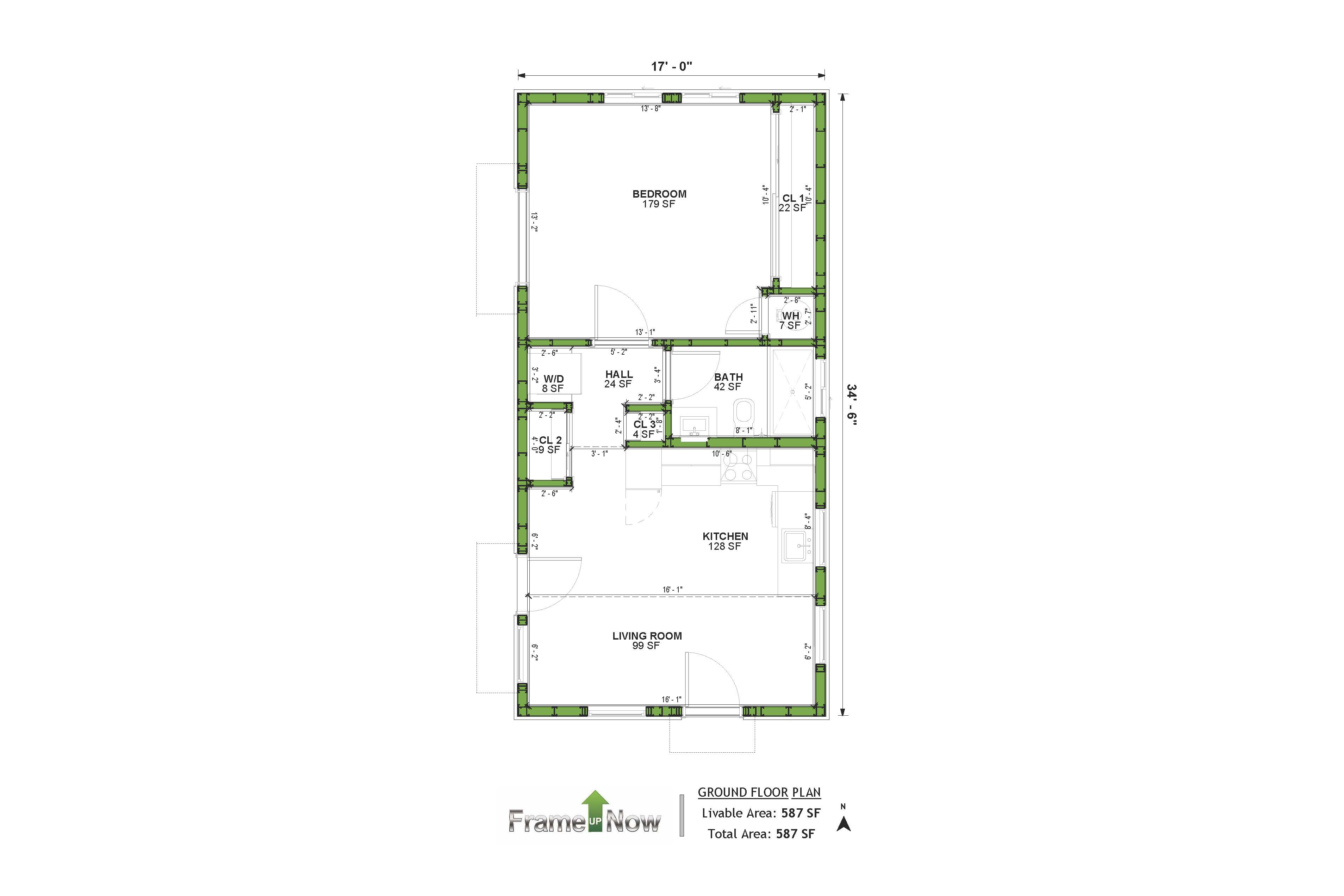 - Cold-Formed Steel Skeleton: Complete frame; wall panels, beams, trusses, and floor joists (if applicable)