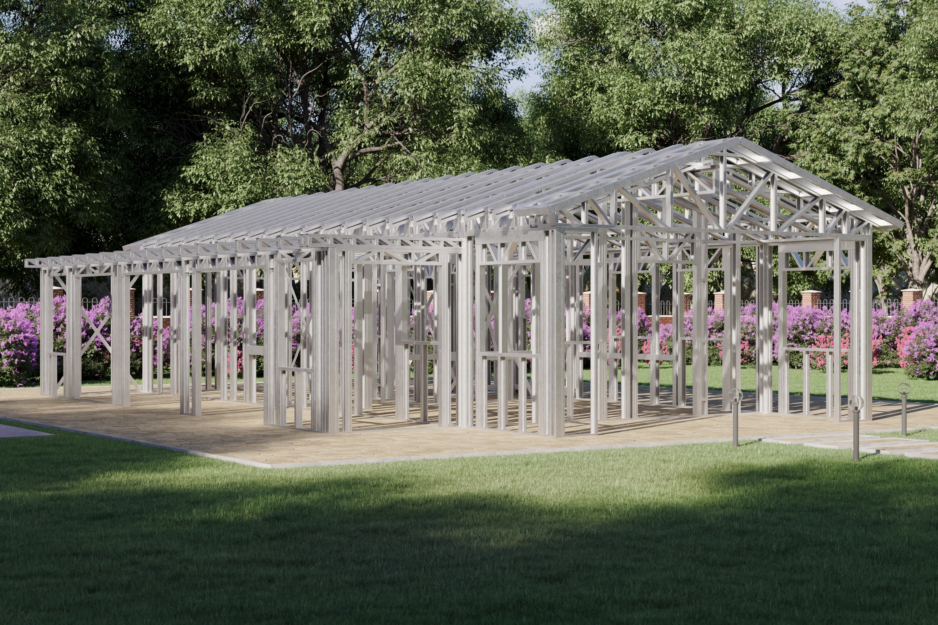 - Cold-Formed Steel Skeleton: Complete frame; wall panels, beams, trusses, floor joists (if applicable), fasteners, and hardware for you to erect your skeleton.