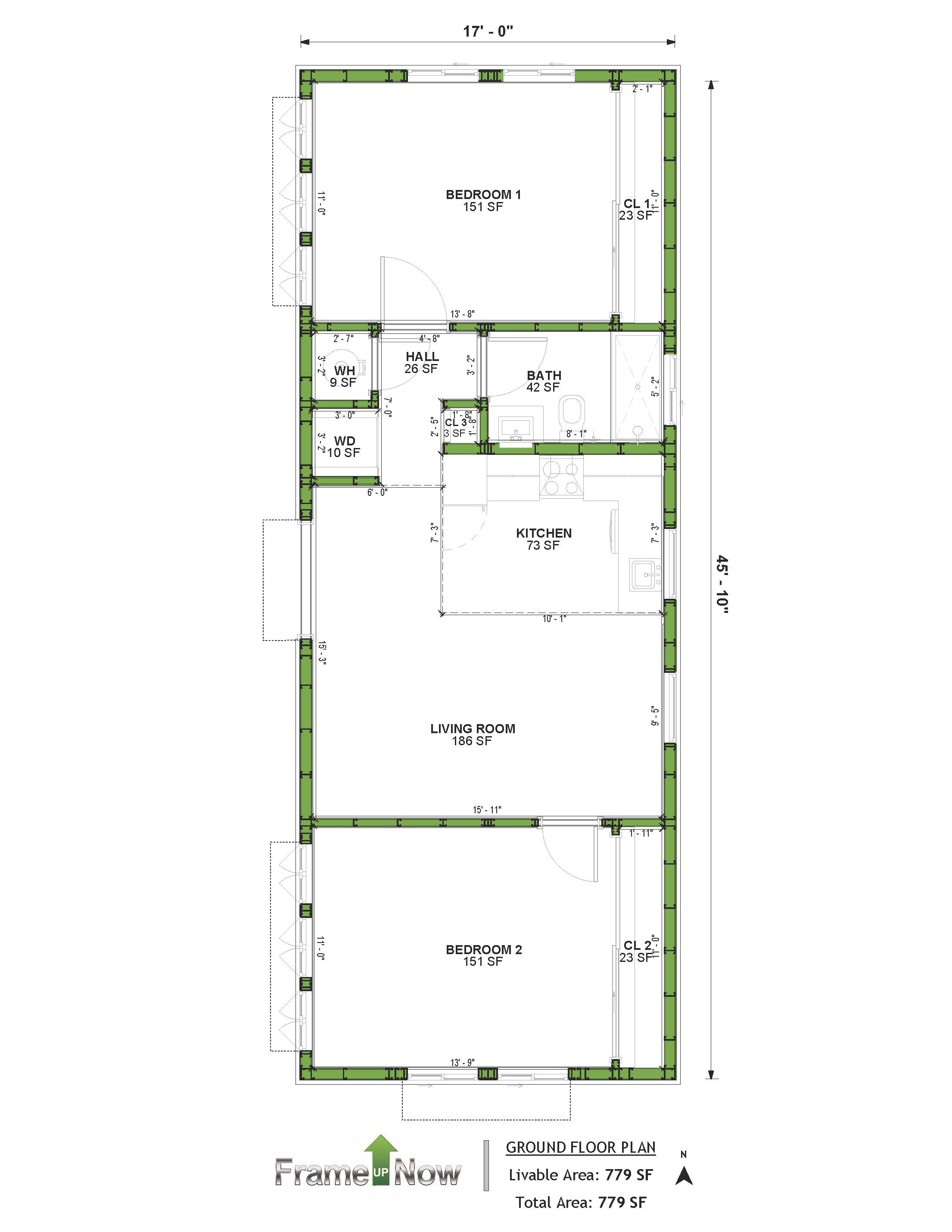 - Cold-Formed Steel Skeleton: Complete frame; wall panels, beams, trusses, and floor joists (if applicable)