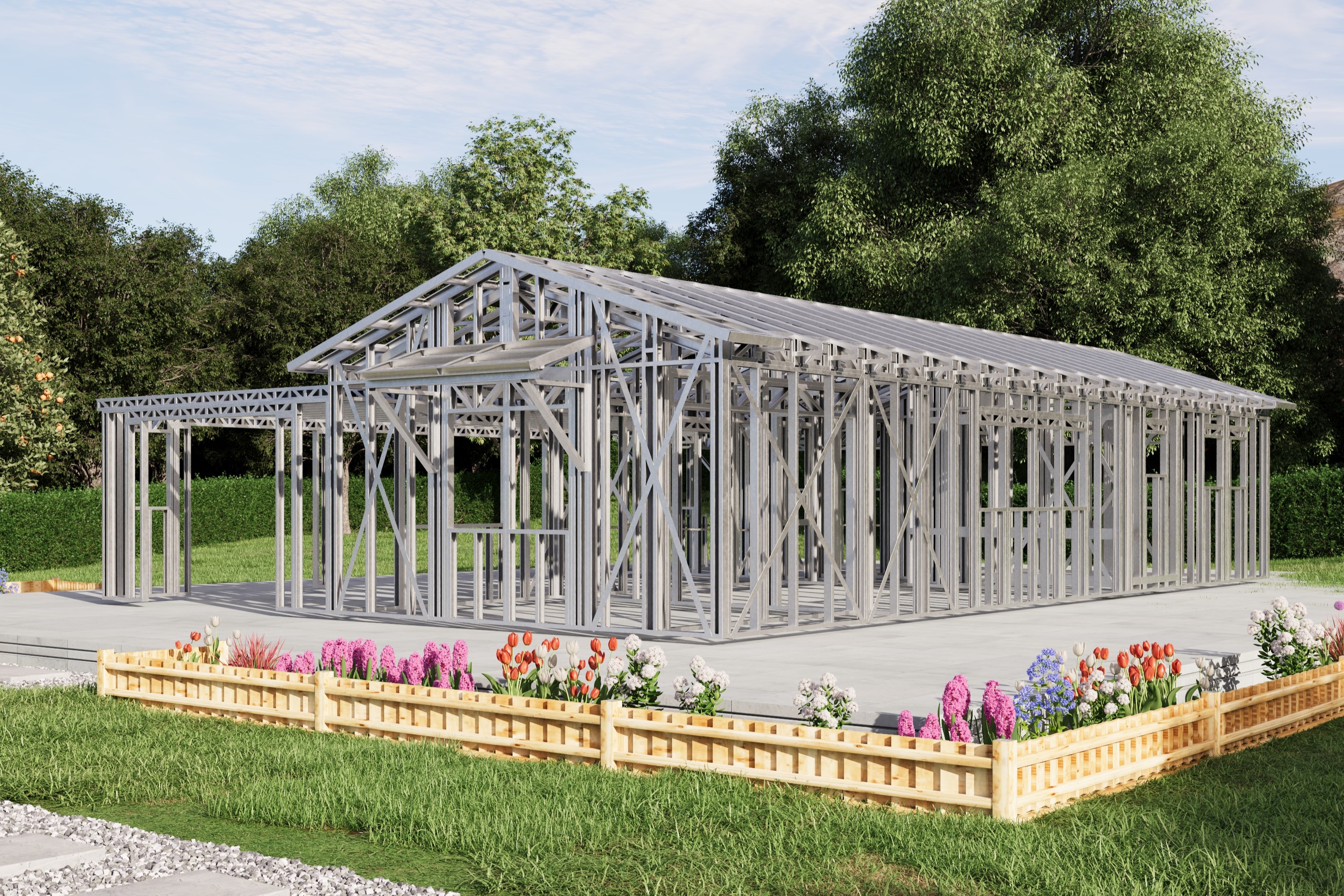 - Cold-Formed Steel Skeleton: Complete frame; wall panels, beams, trusses, floor joists (if applicable), fasteners, and hardware for you to erect your skeleton.
