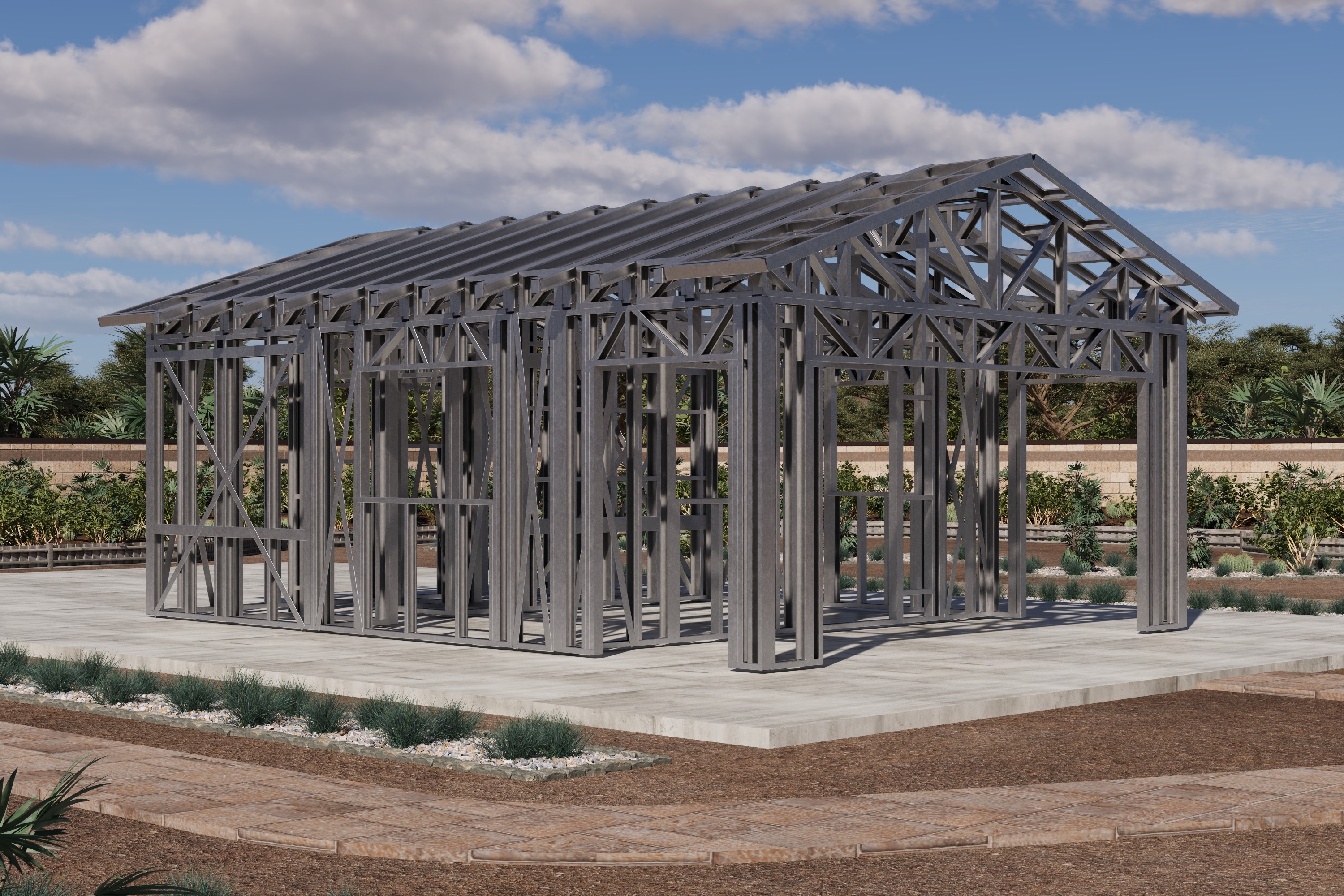 - Cold-Formed Steel Skeleton: Complete frame; wall panels, beams, trusses, floor joists (if applicable), fasteners, and hardware for you to erect your skeleton.