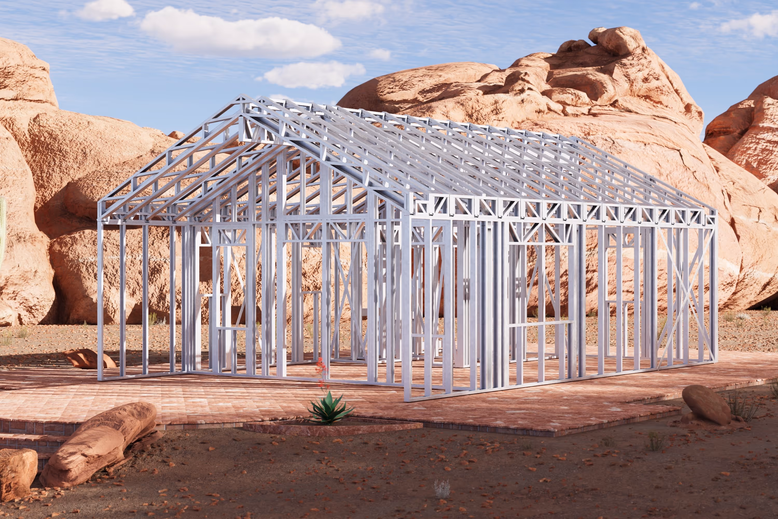 - Cold-Formed Steel Skeleton: Complete frame; wall panels, beams, trusses, floor joists (if applicable), fasteners, and hardware for you to erect your skeleton.