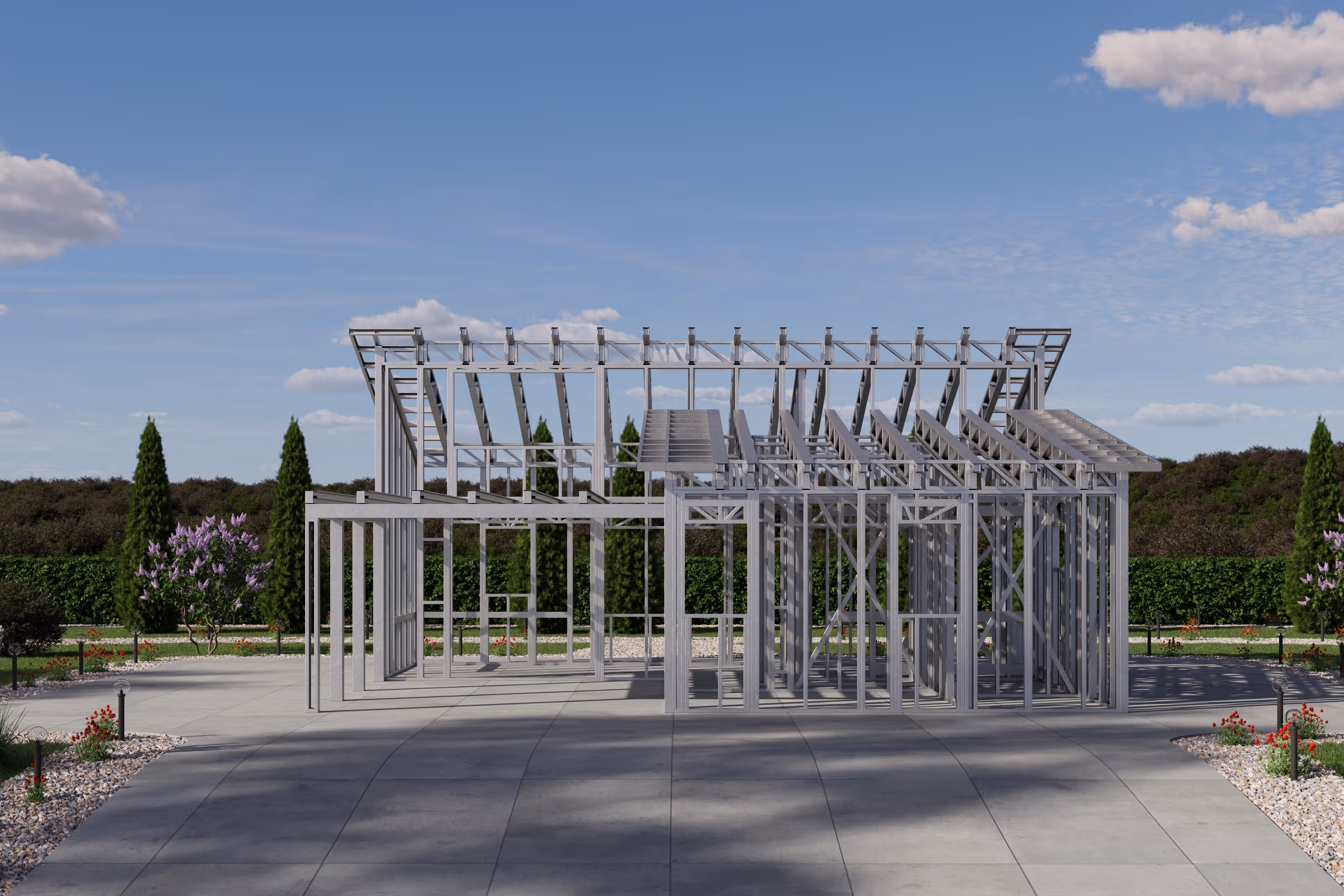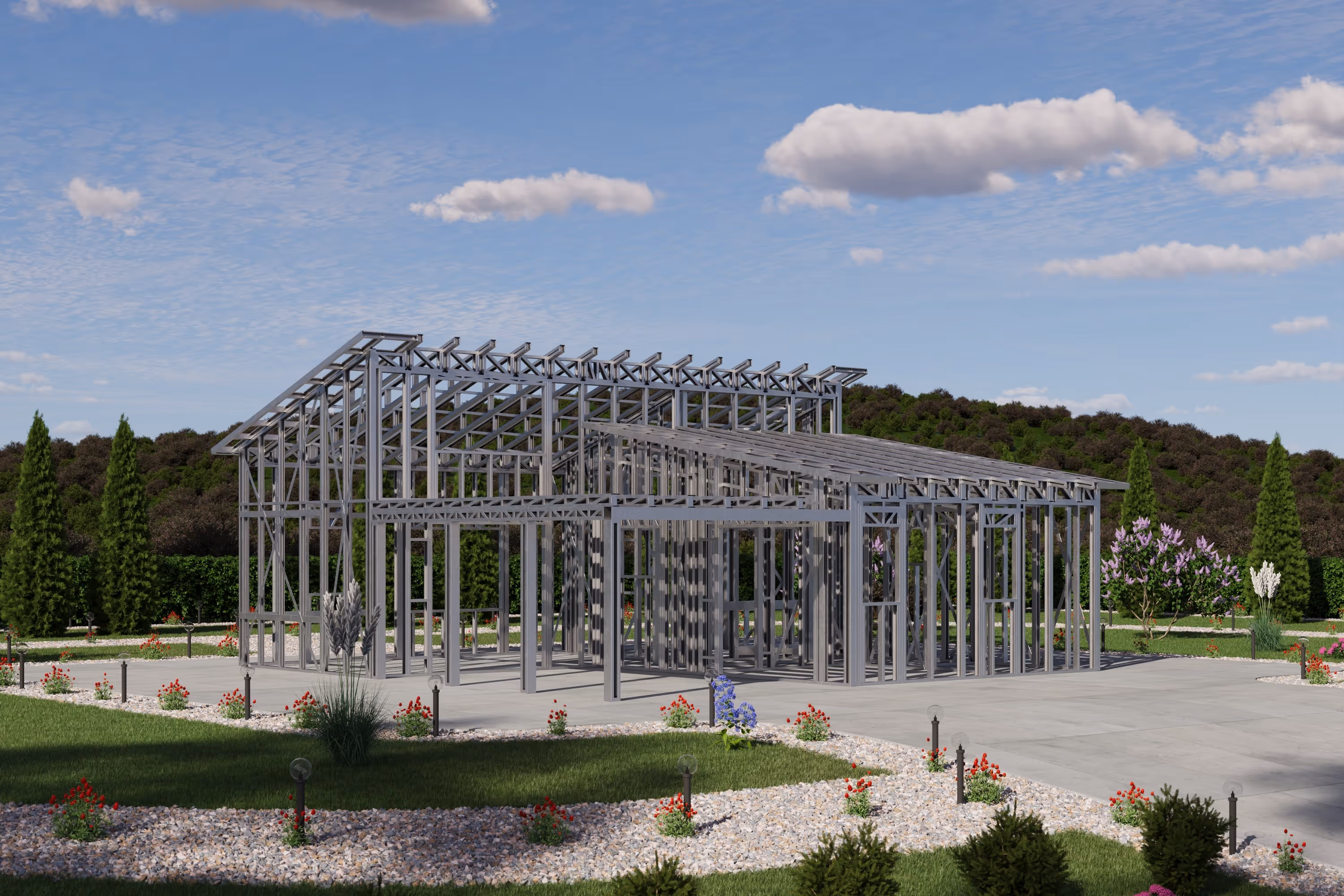 - Cold-Formed Steel Skeleton: Complete frame; wall panels, beams, trusses, floor joists (if applicable), fasteners, and hardware for you to erect your skeleton.