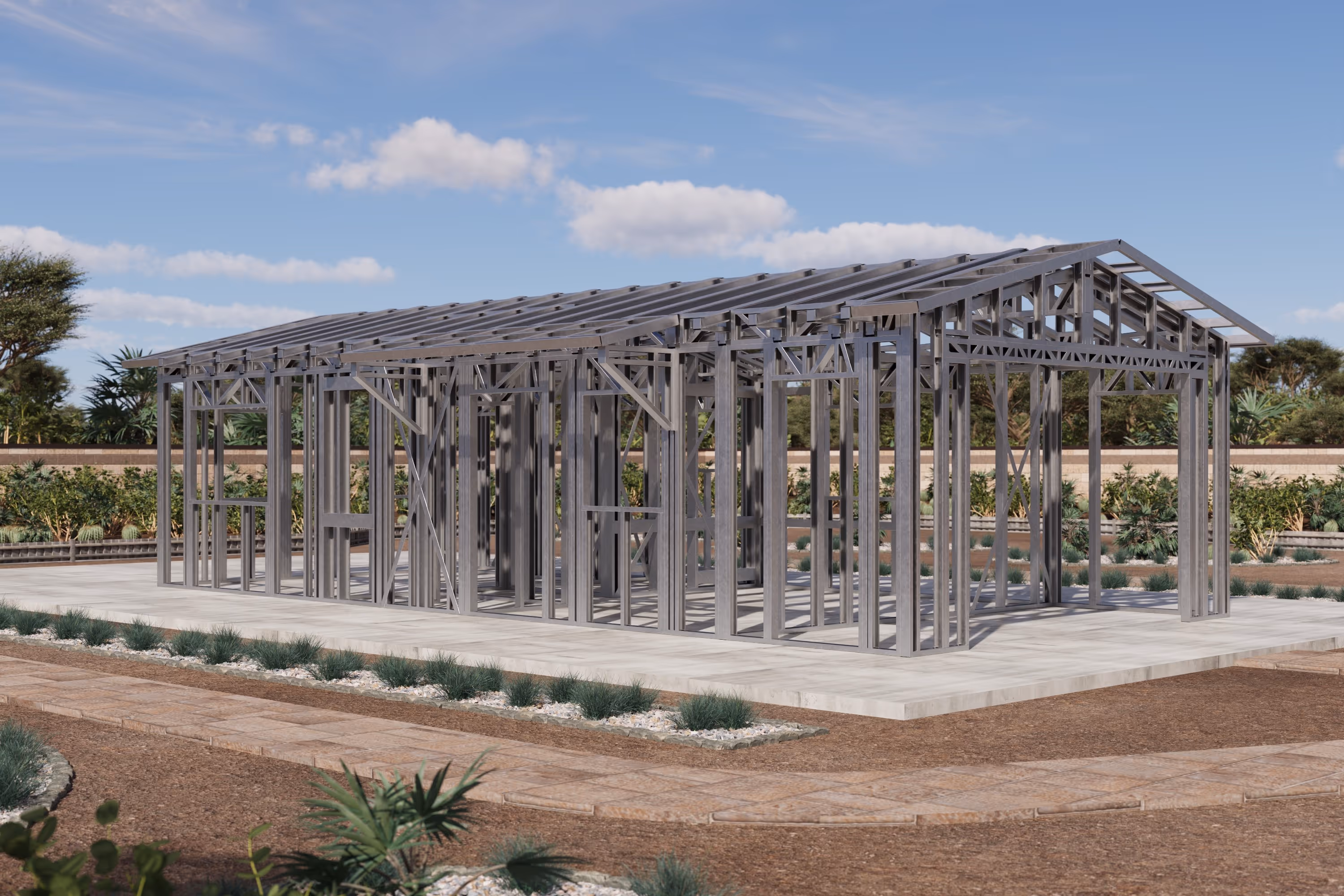 • Cold-Formed Steel Skeleton: Complete frame; wall panels, beams, trusses, floor joists (if applicable), fasteners, and hardware for you to erect your skeleton.