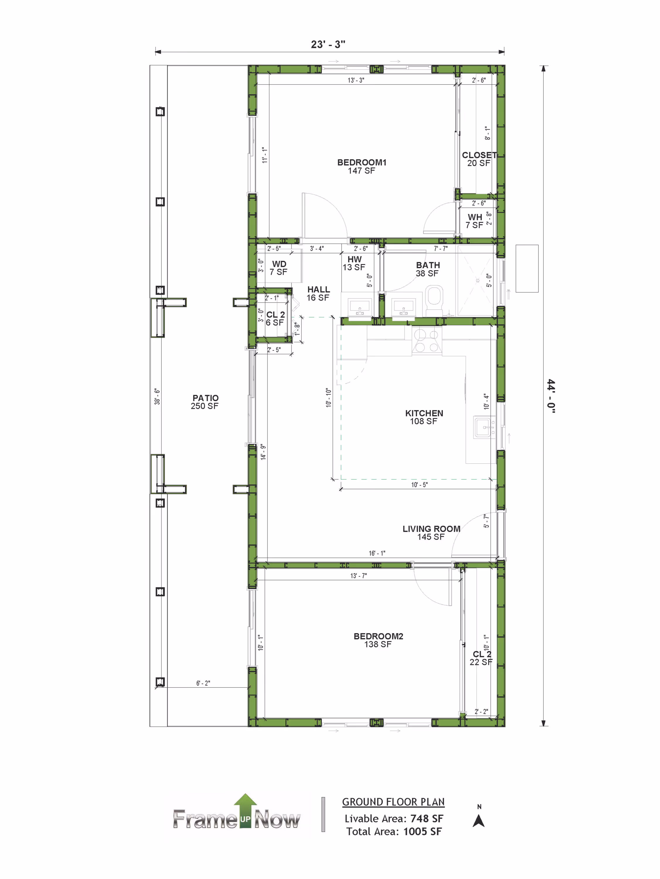 Total Area: 1105 SF