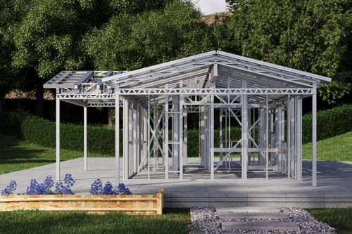 - Cold-Formed Steel Skeleton: Complete frame; wall panels, beams, trusses, floor joists (if applicable), fasteners, and hardware for you to erect your skeleton.