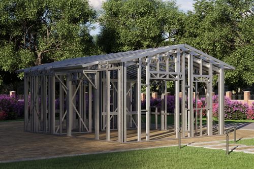 - Cold-Formed Steel Skeleton: Complete frame; wall panels, beams, trusses, floor joists (if applicable), fasteners, and hardware for you to erect your skeleton.