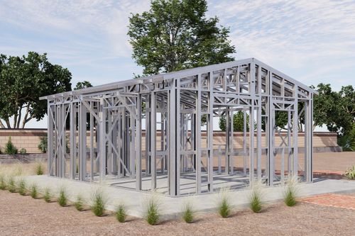 - Cold-Formed Steel Skeleton: Complete frame; wall panels, beams, trusses, floor joists (if applicable), fasteners, and hardware for you to erect your skeleton.