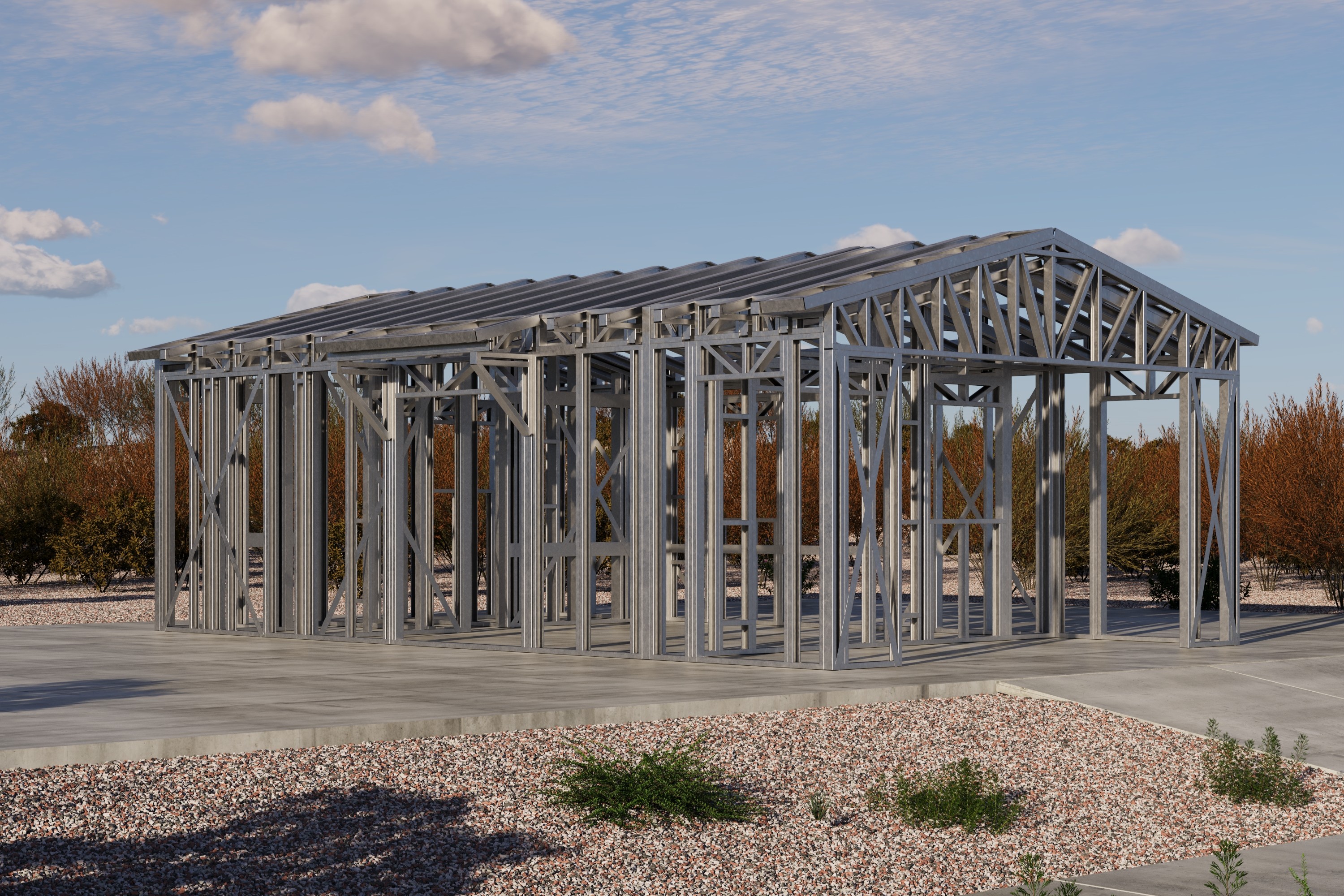 - Cold-Formed Steel Skeleton: Complete frame; wall panels, beams, trusses, floor joists (if applicable), fasteners, and hardware for you to erect your skeleton.