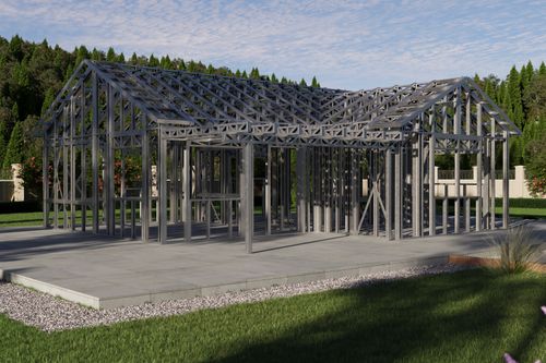 - Cold-Formed Steel Skeleton: Complete frame; wall panels, beams, trusses, floor joists (if applicable), fasteners, and hardware for you to erect your skeleton.