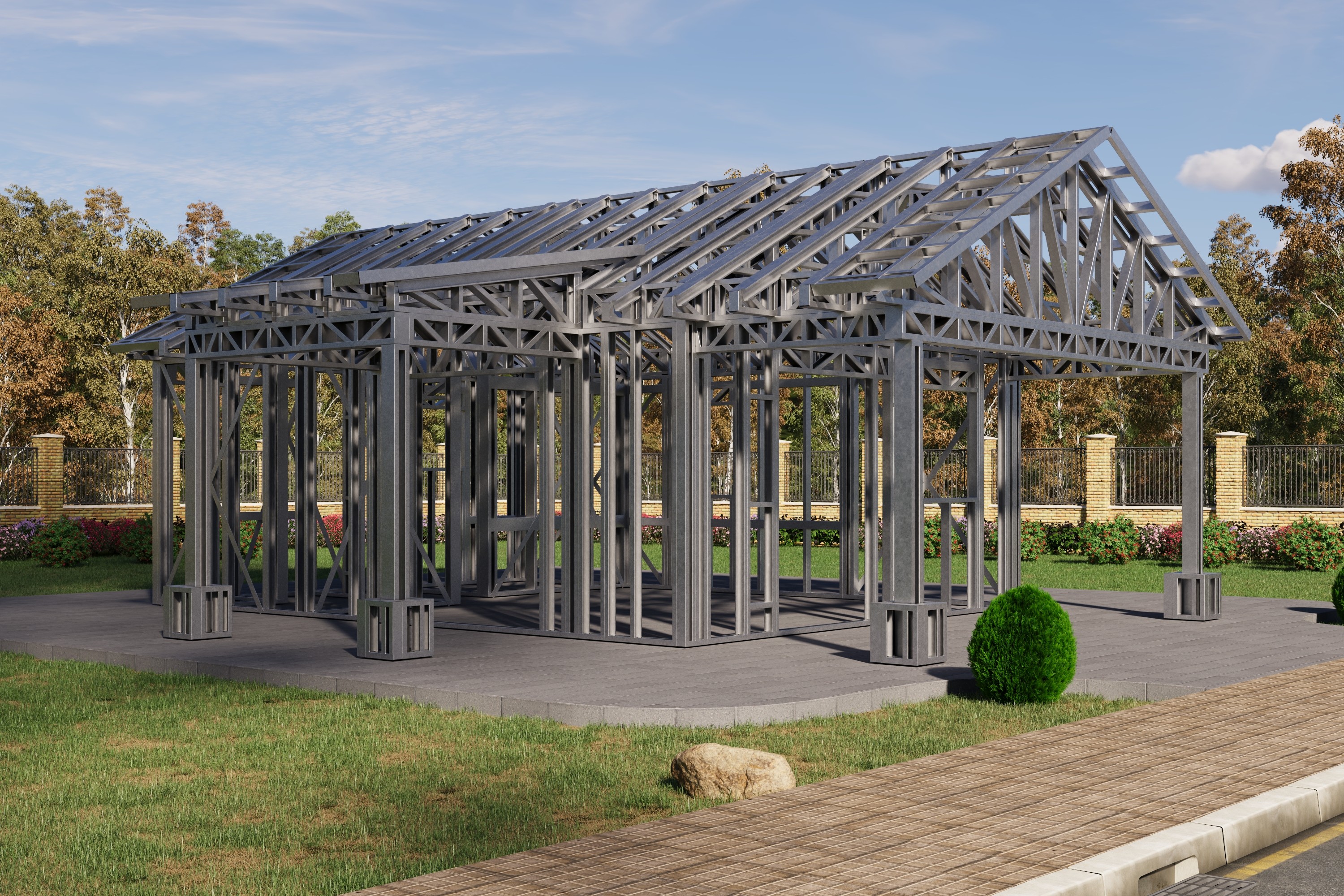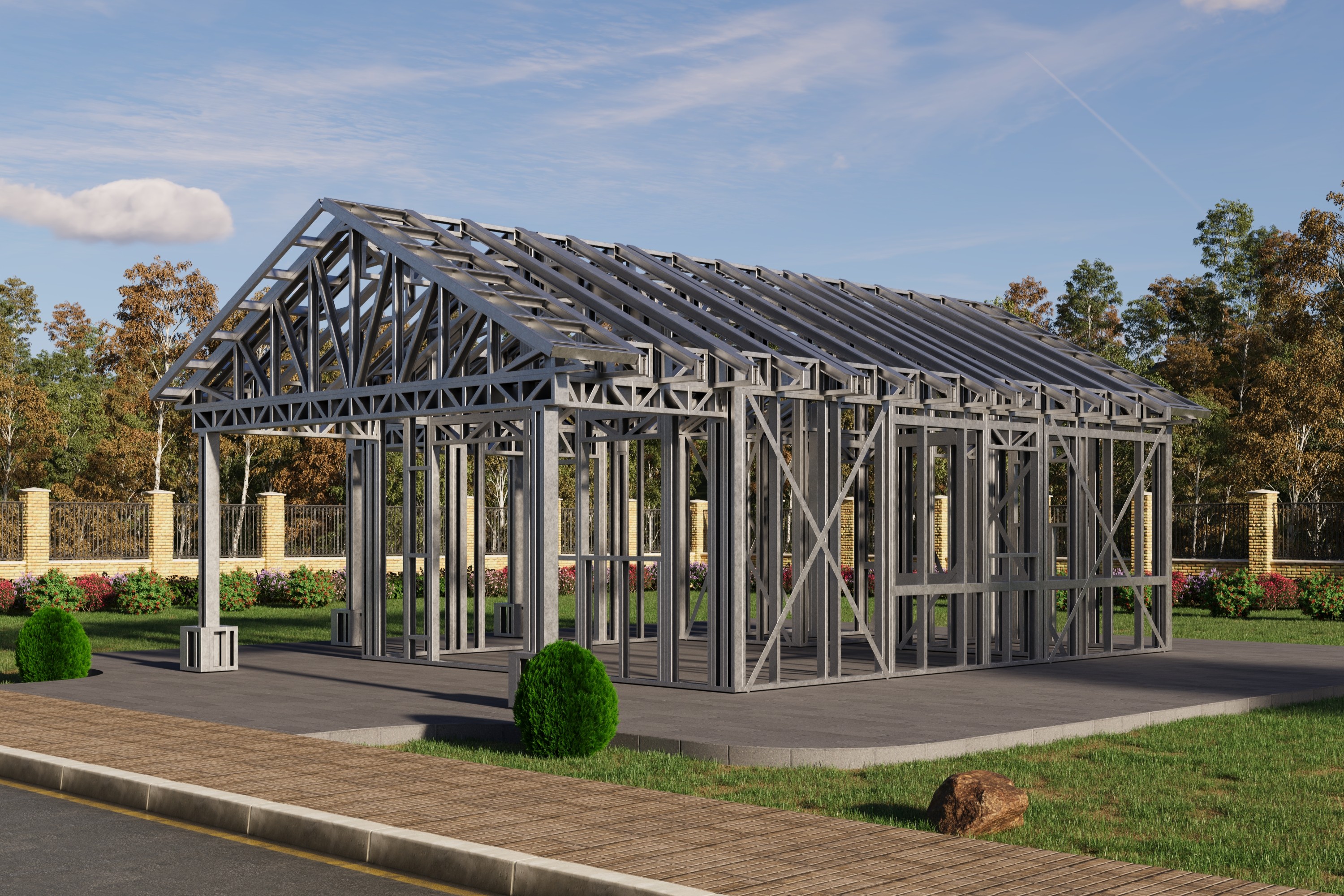 - Cold-Formed Steel Skeleton: Complete frame; wall panels, beams, trusses, floor joists (if applicable), fasteners, and hardware for you to erect your skeleton.