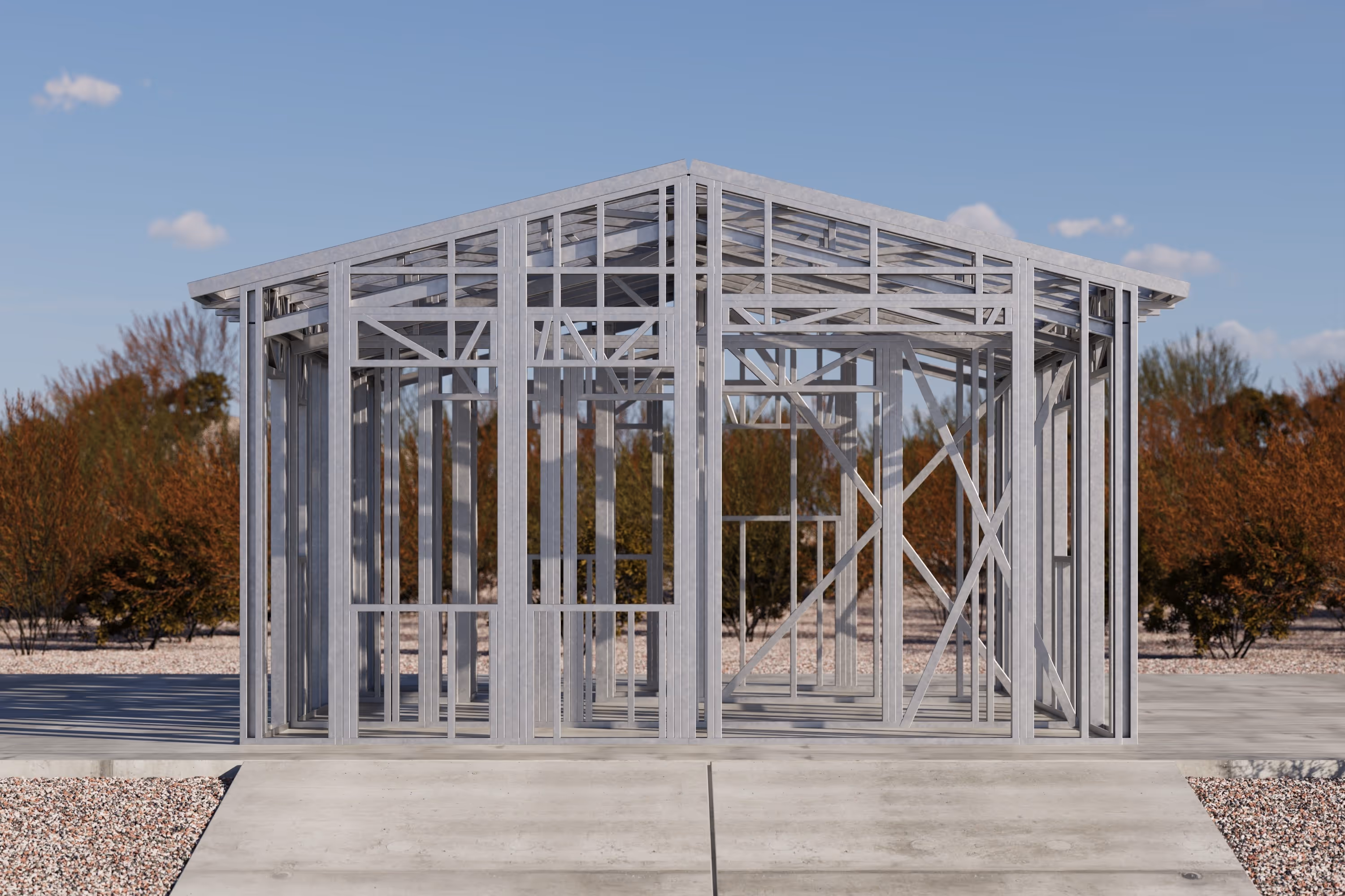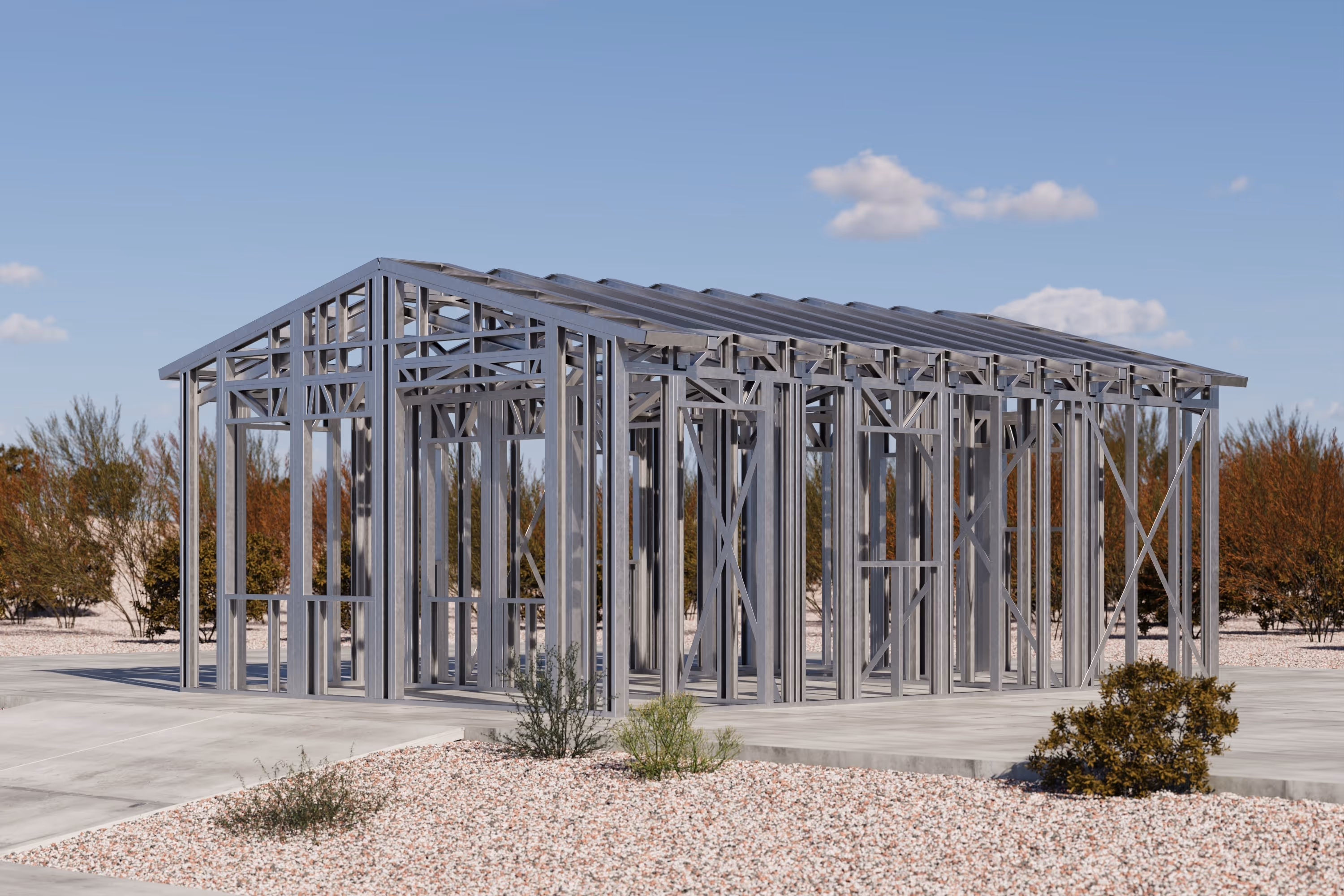 - Cold-Formed Steel Skeleton: Complete frame; wall panels, beams, trusses, floor joists (if applicable), fasteners, and hardware for you to erect your skeleton.