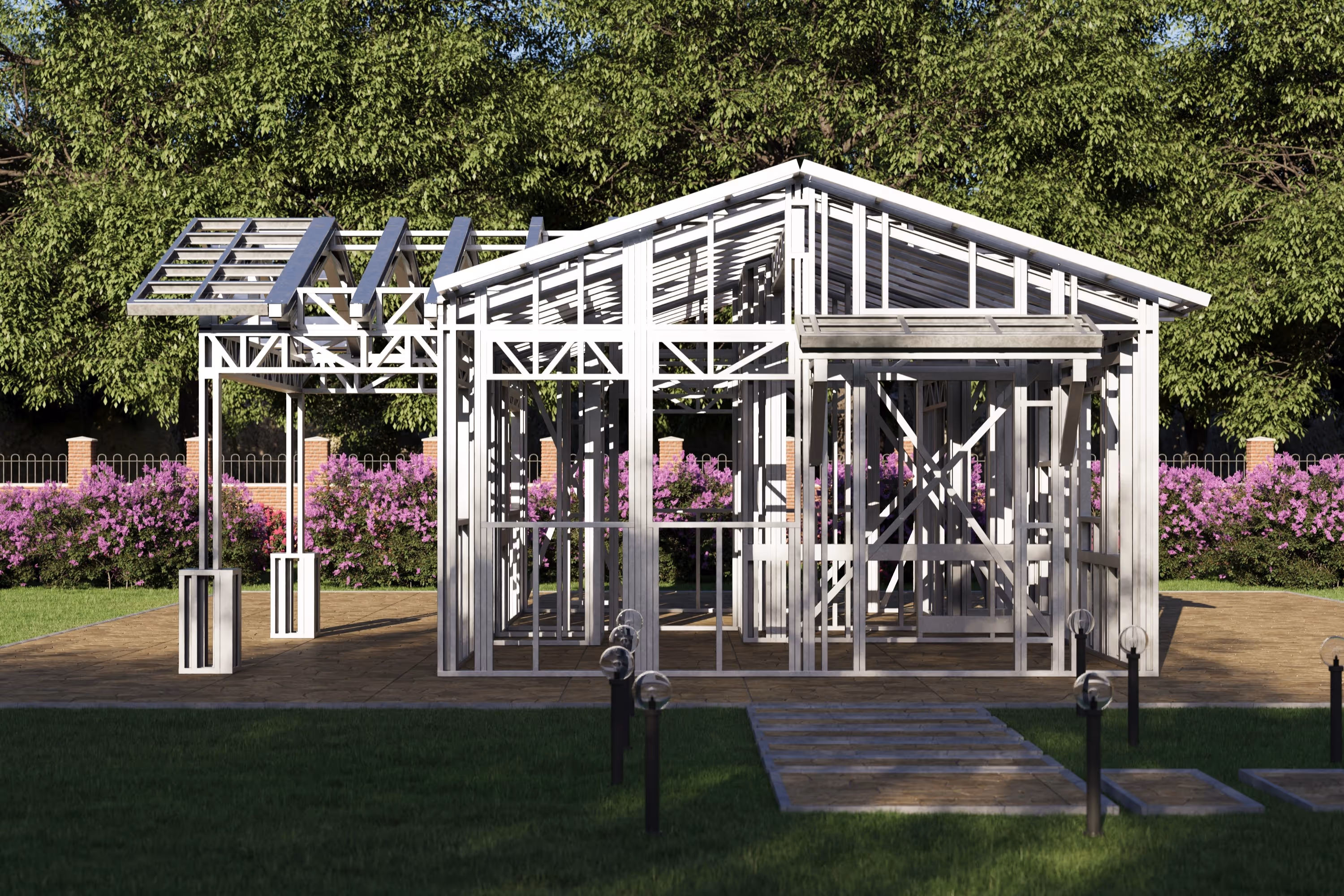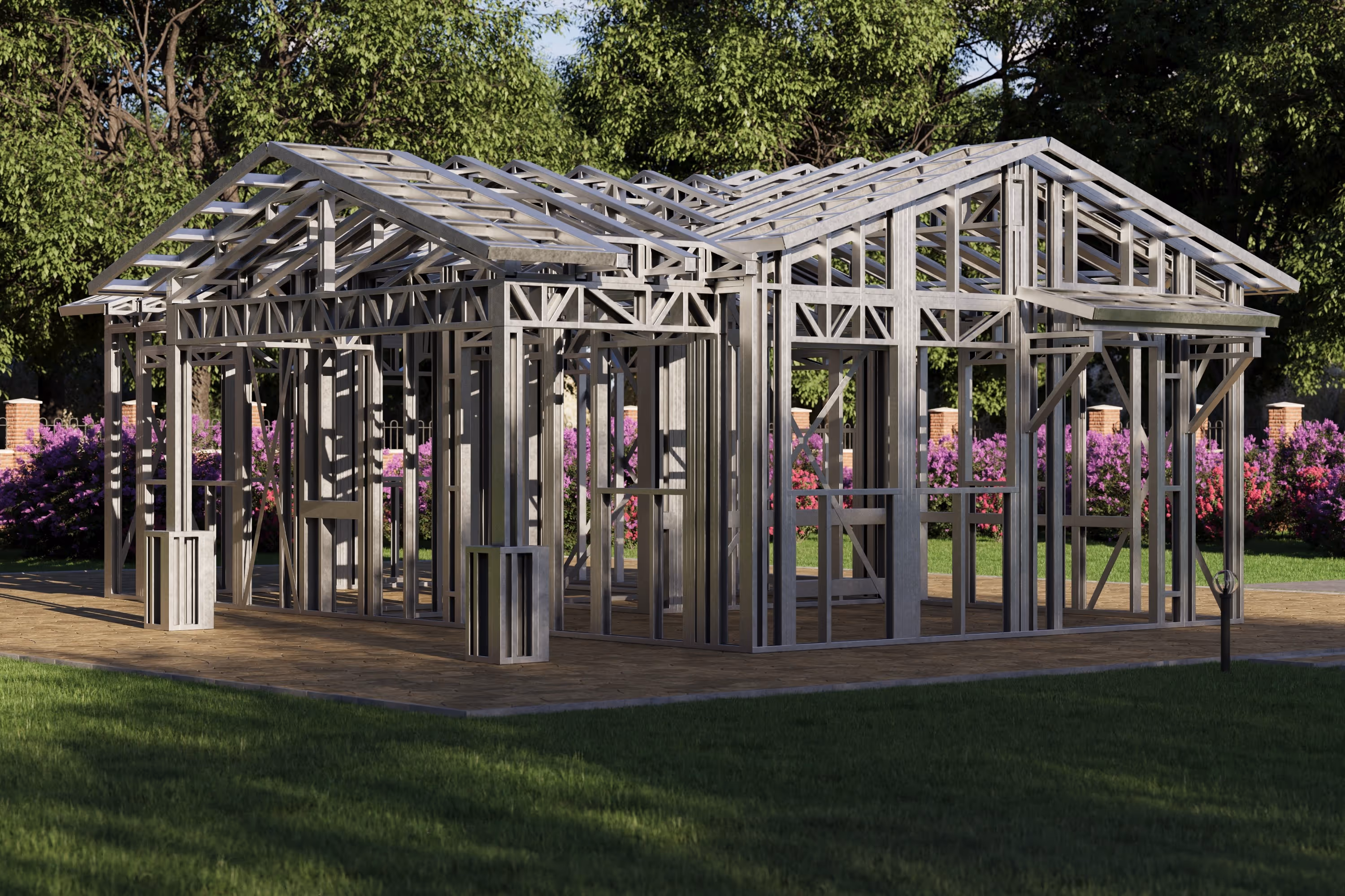 - Cold-Formed Steel Skeleton: Complete frame; wall panels, beams, trusses, floor joists (if applicable), fasteners, and hardware for you to erect your skeleton.