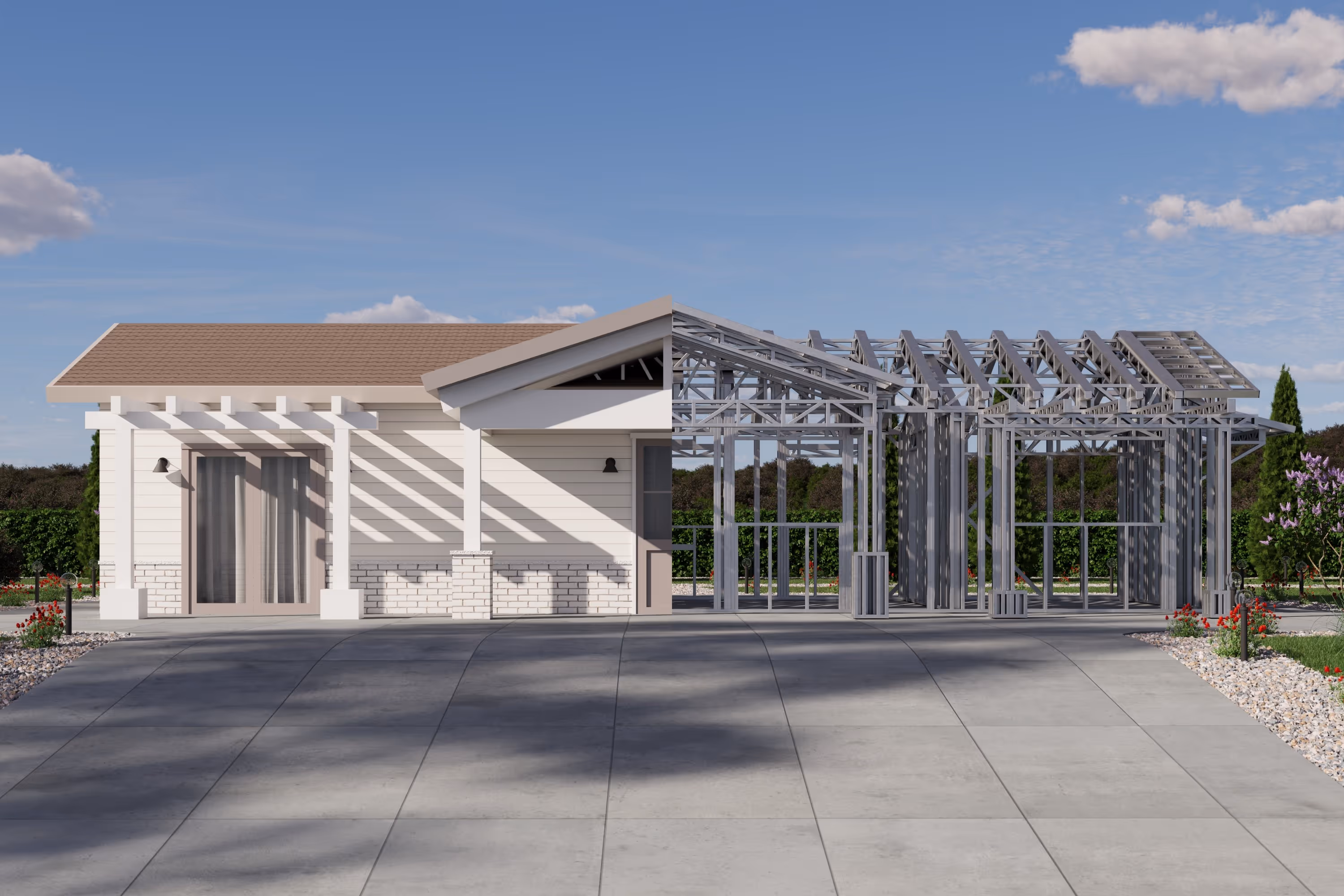 - Cold-Formed Steel Skeleton: Complete frame; wall panels, beams, trusses, floor joists (if applicable), fasteners, and hardware for you to erect your skeleton.