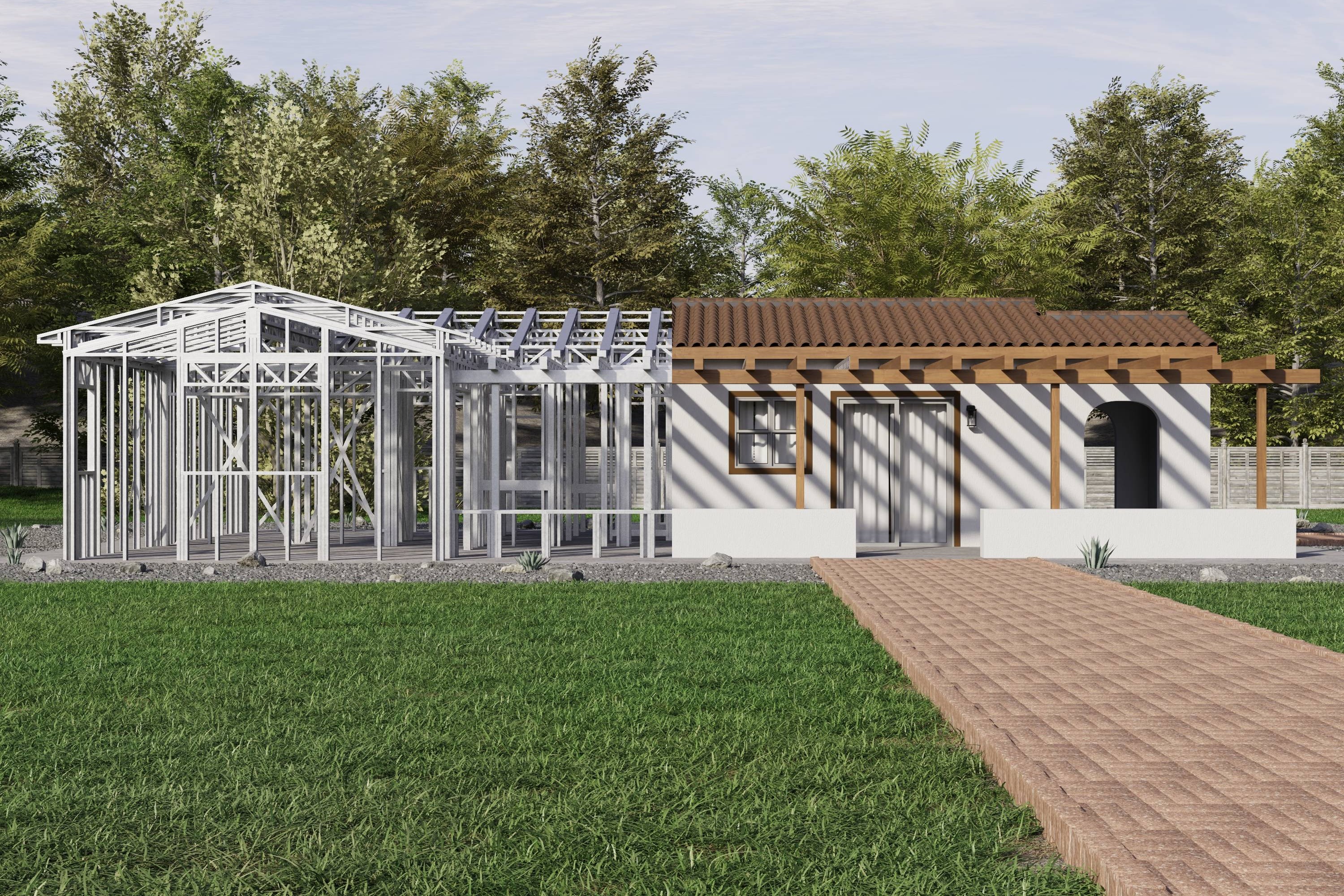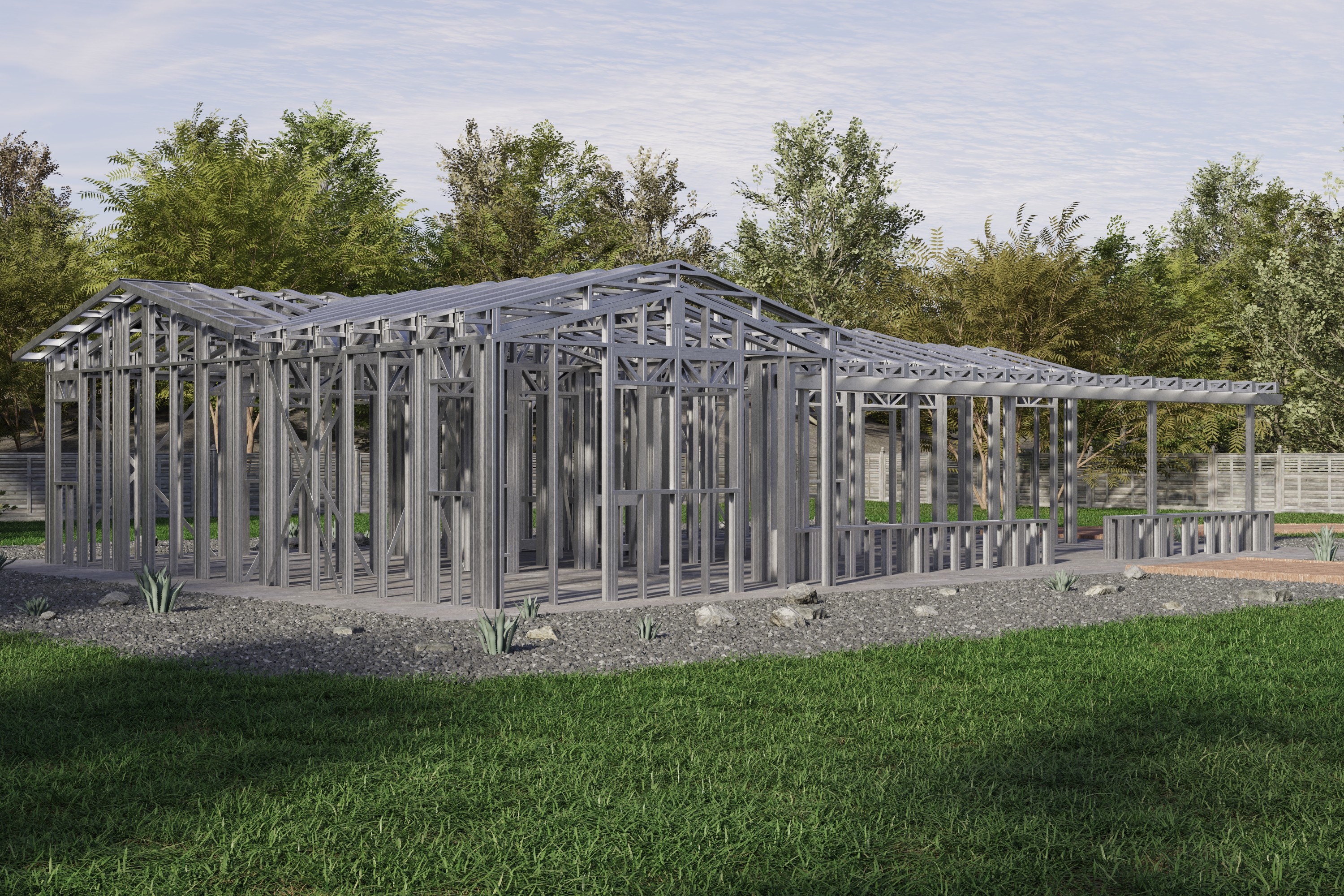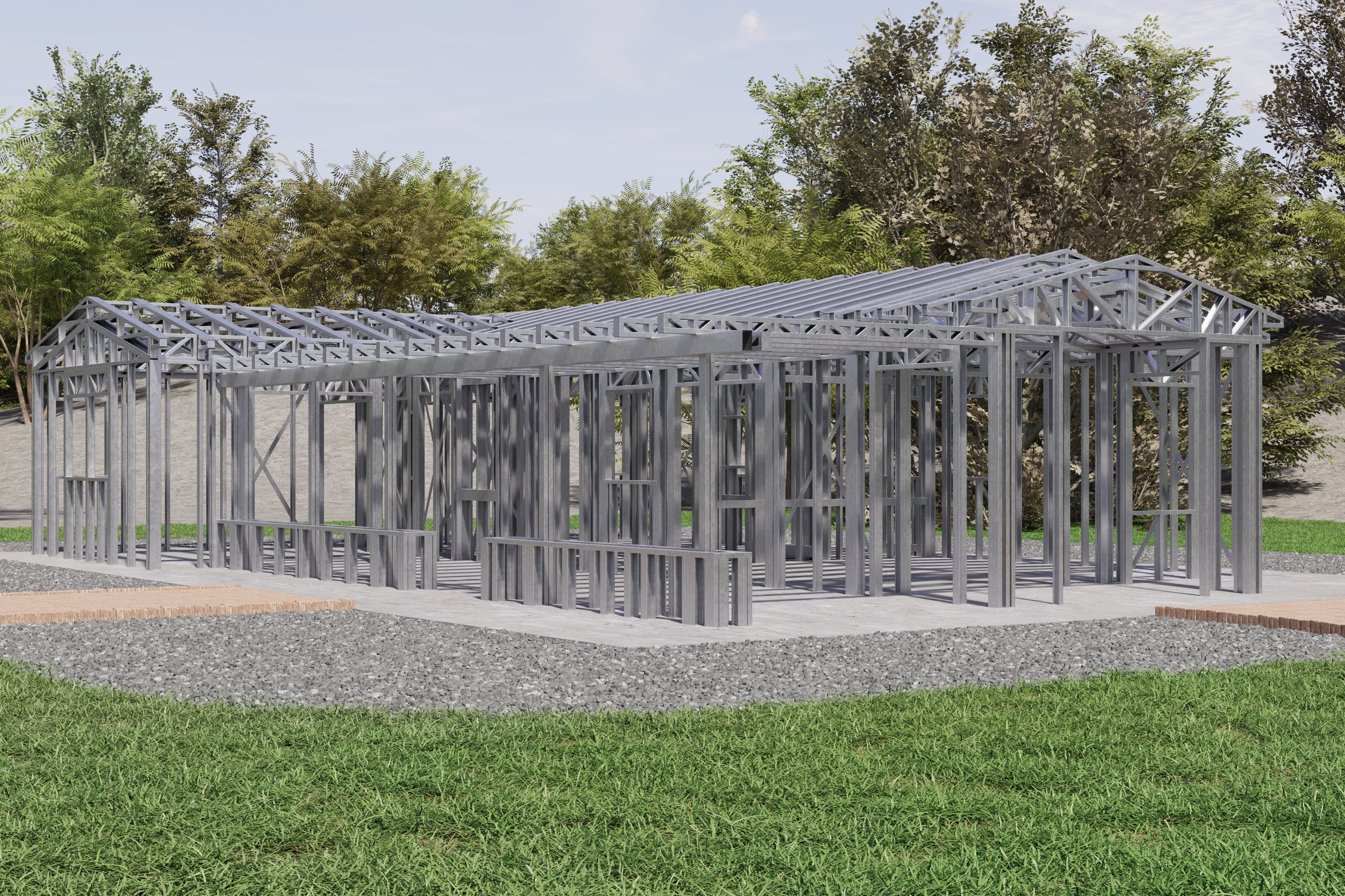 - Cold-Formed Steel Skeleton: Complete frame; wall panels, beams, trusses, floor joists (if applicable), fasteners, and hardware for you to erect your skeleton.