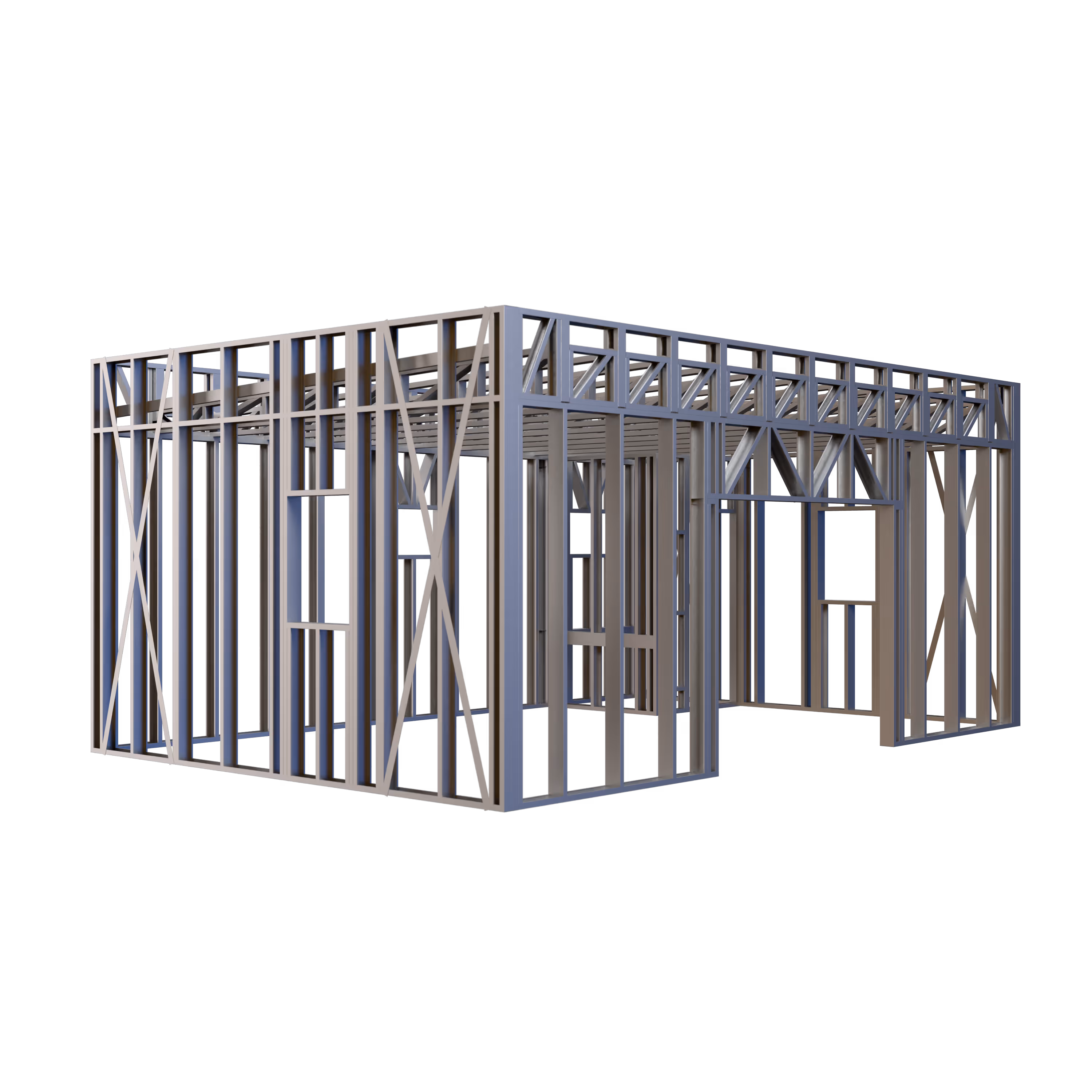- Cold-Formed Steel Skeleton: Complete frame; wall panels, beams, trusses, floor joists (if applicable), fasteners, and hardware for you to erect your skeleton.